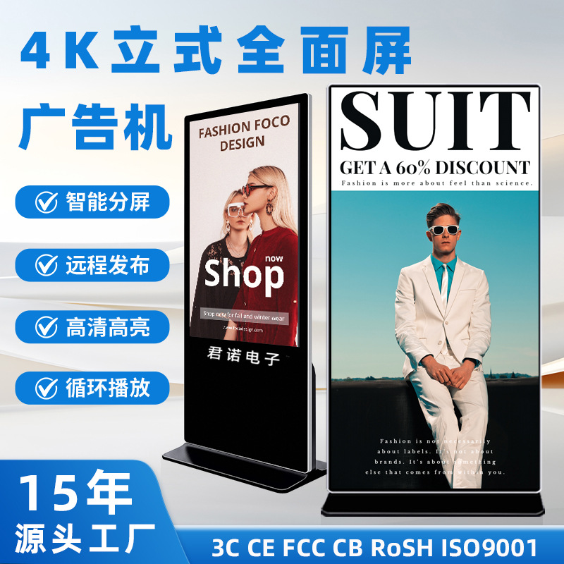 55寸/65寸全面屏立式广告机安卓红外电容触摸商场落地广告一体机