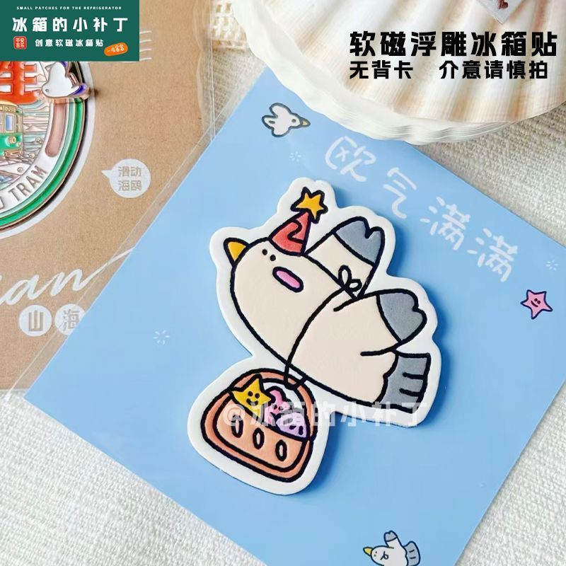 新款欧气满满快乐海鸥卡通软磁浮雕冰箱贴磁吸式家居厨房装饰磁贴