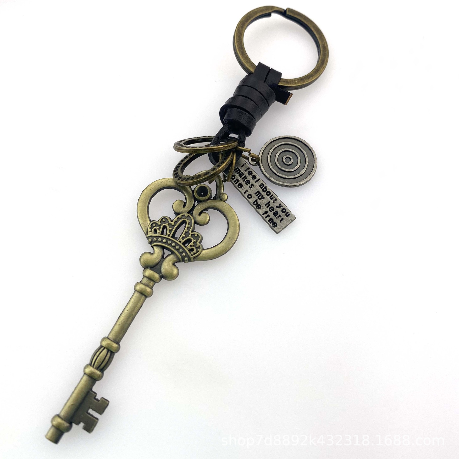 国境を越えた欧米の金属古銅色の長い鍵ストラップ