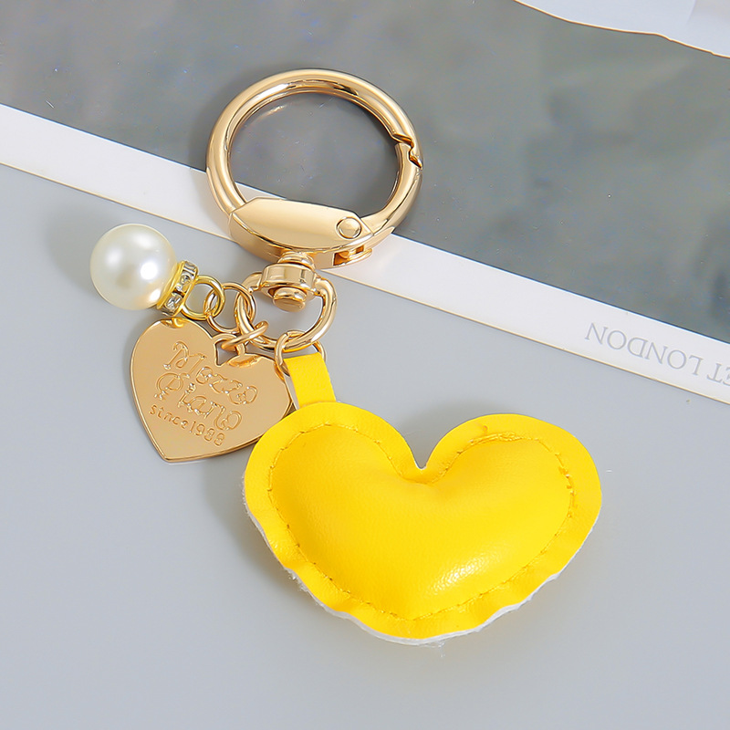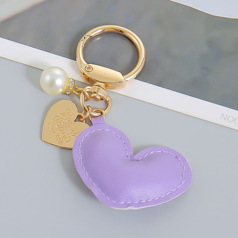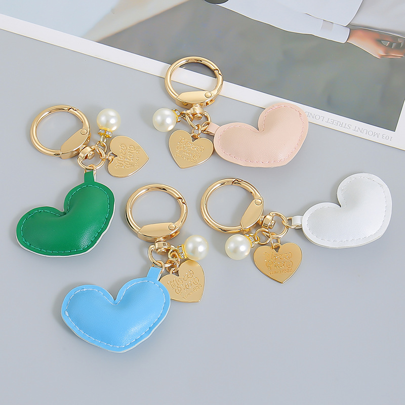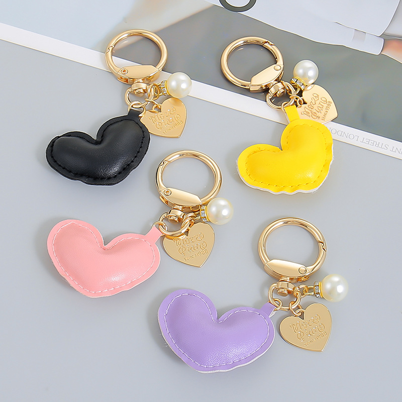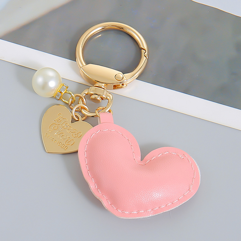 新しい革の愛の合金のキーホルダーのペンダントのアイデアのカラーの桃の心の真珠の部品の小さい清新な包みの装飾