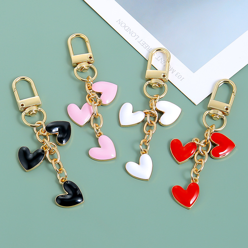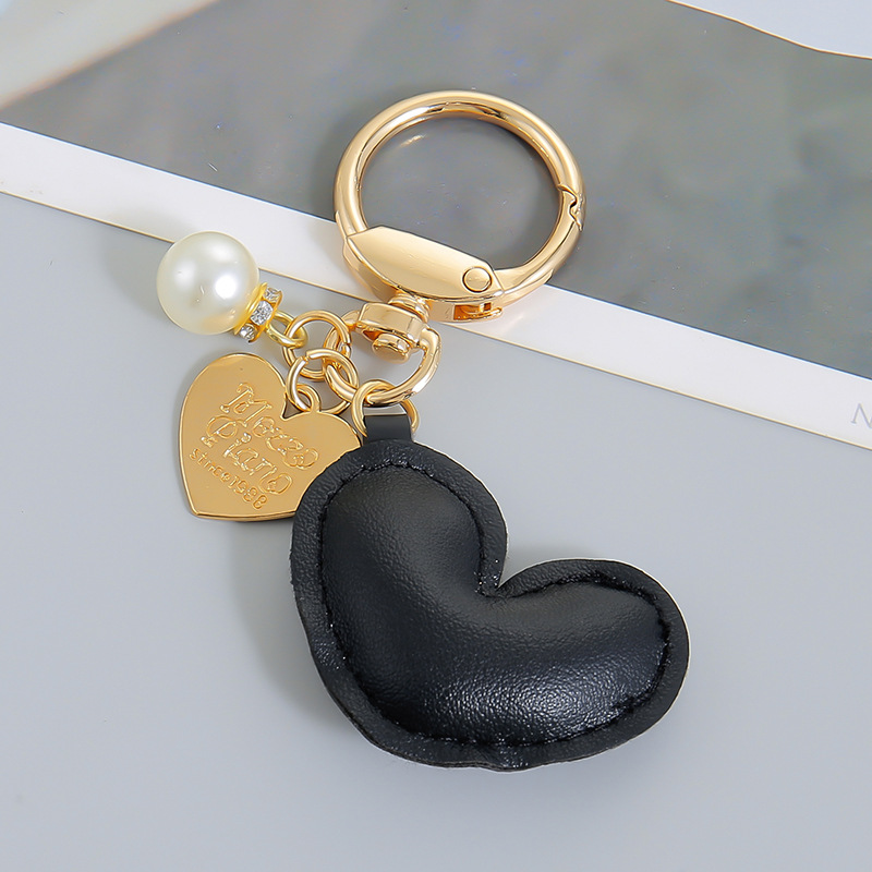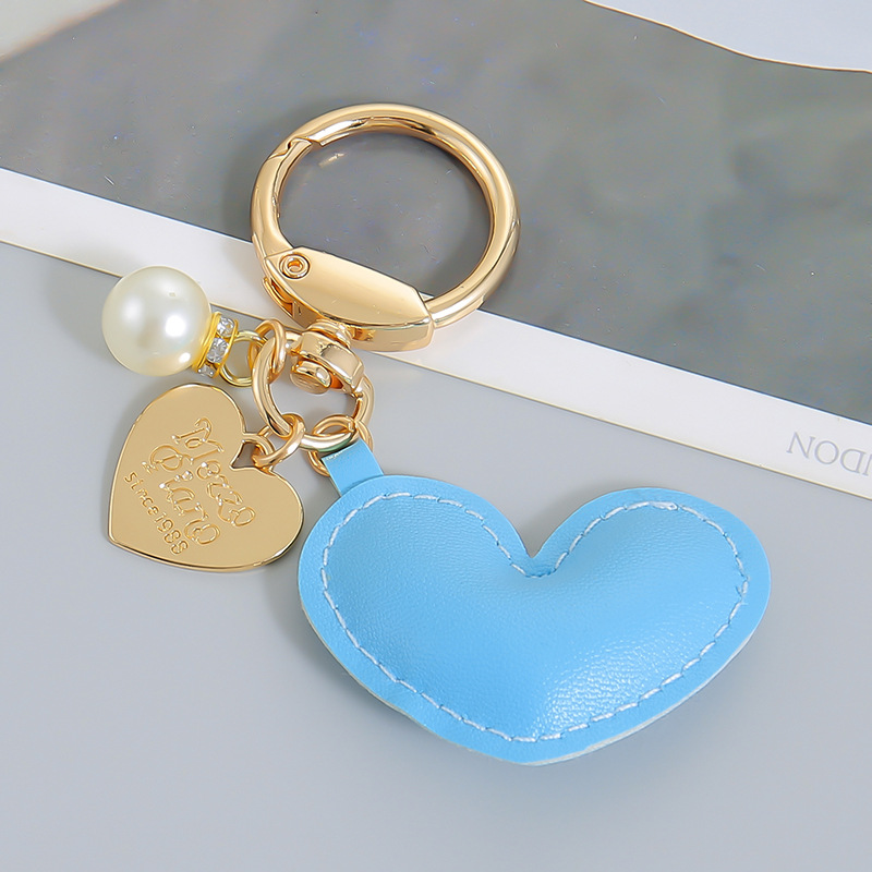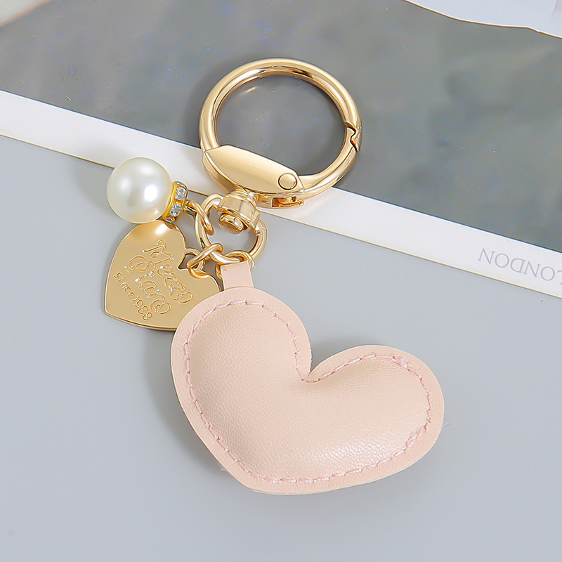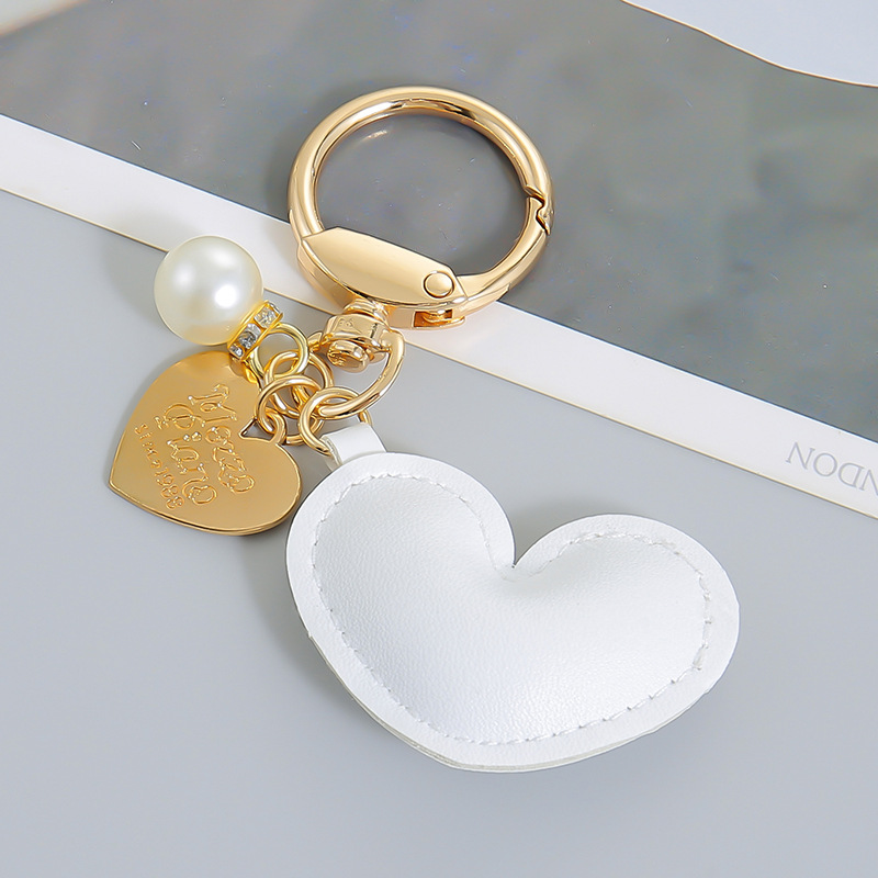 新しい革の愛の合金のキーホルダーのペンダントのアイデアのカラーの桃の心の真珠の部品の小さい清新な包みの装飾