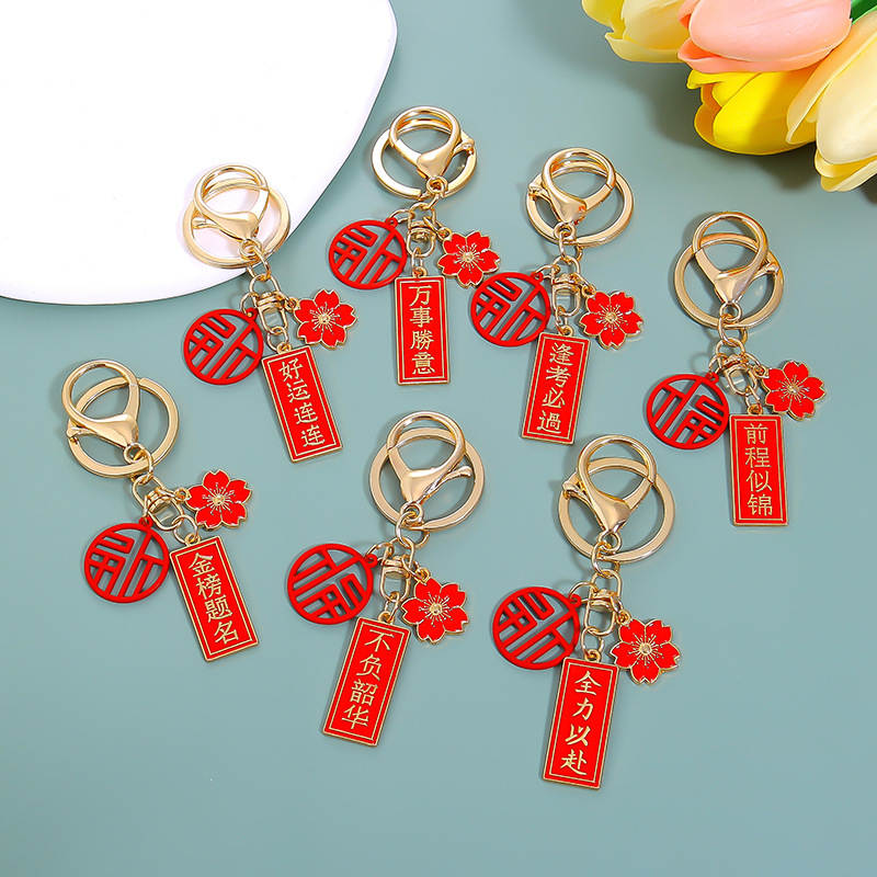 中国風文字合金キーホルダー進学激励志祝福語鍵ストラップバッグペンダント学生プレゼント