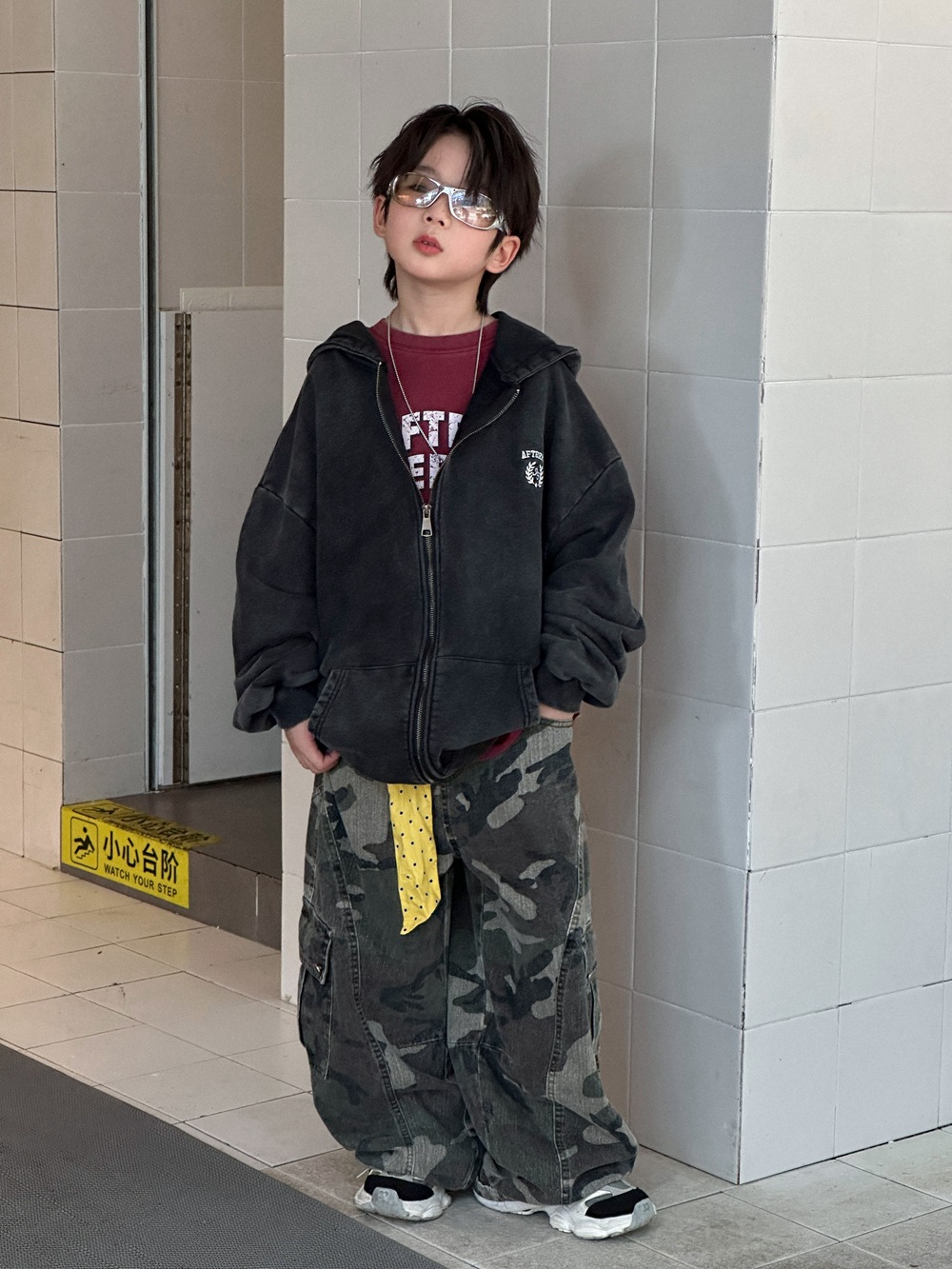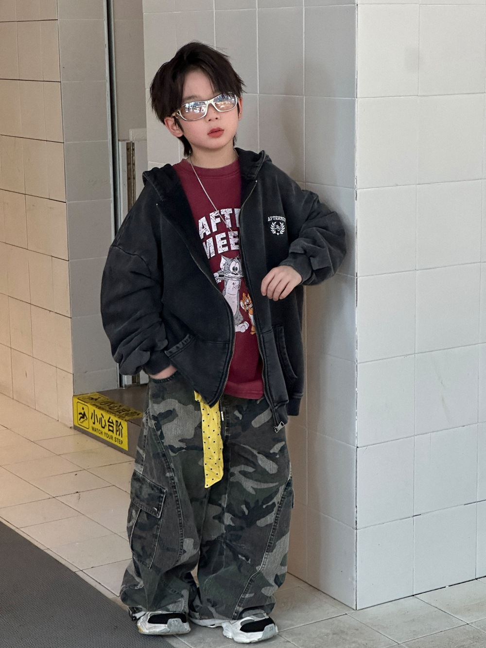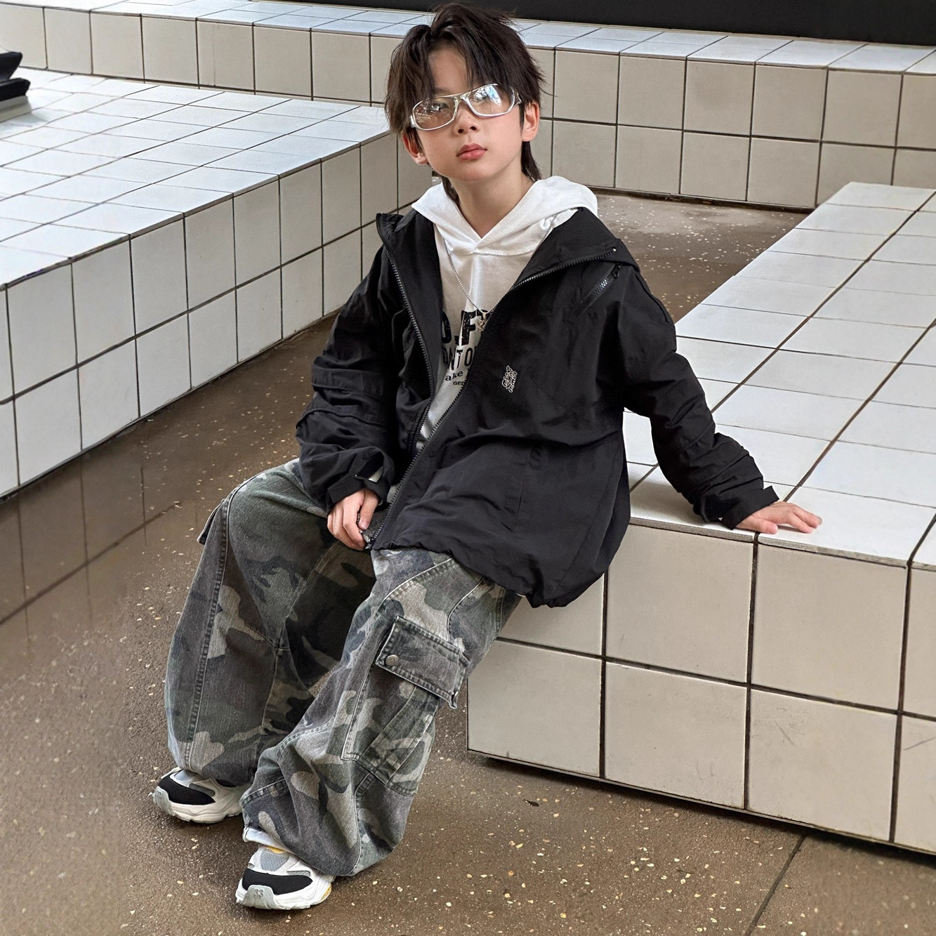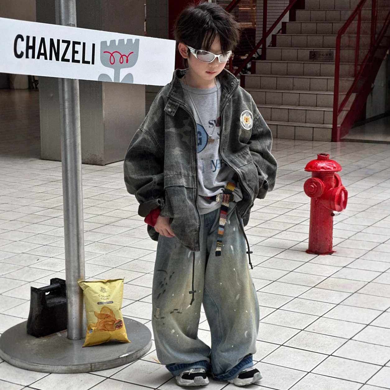 新尔2025秋季新款重工洗褪做旧迷彩夹克儿童宽松阔版外套纯棉男童