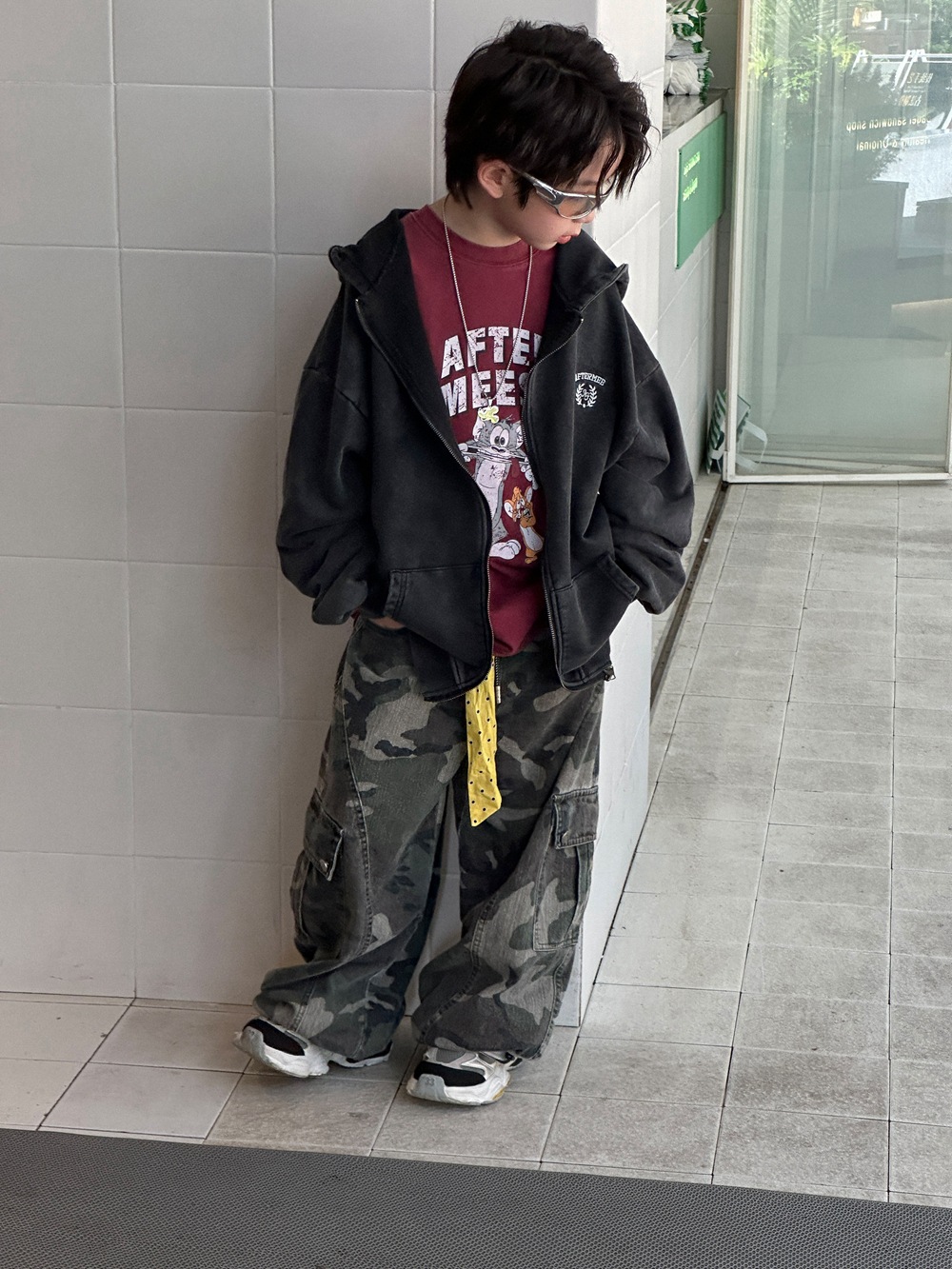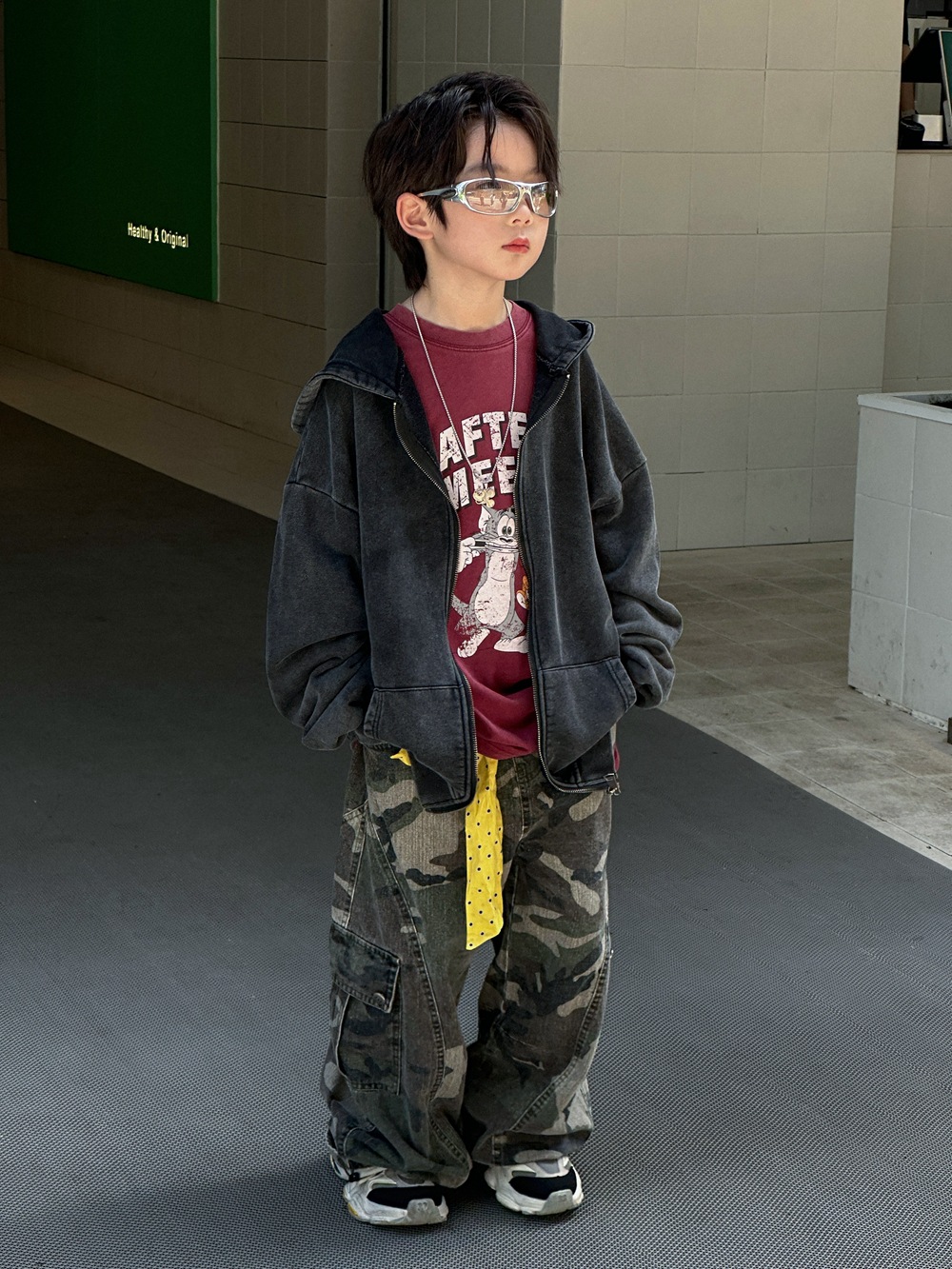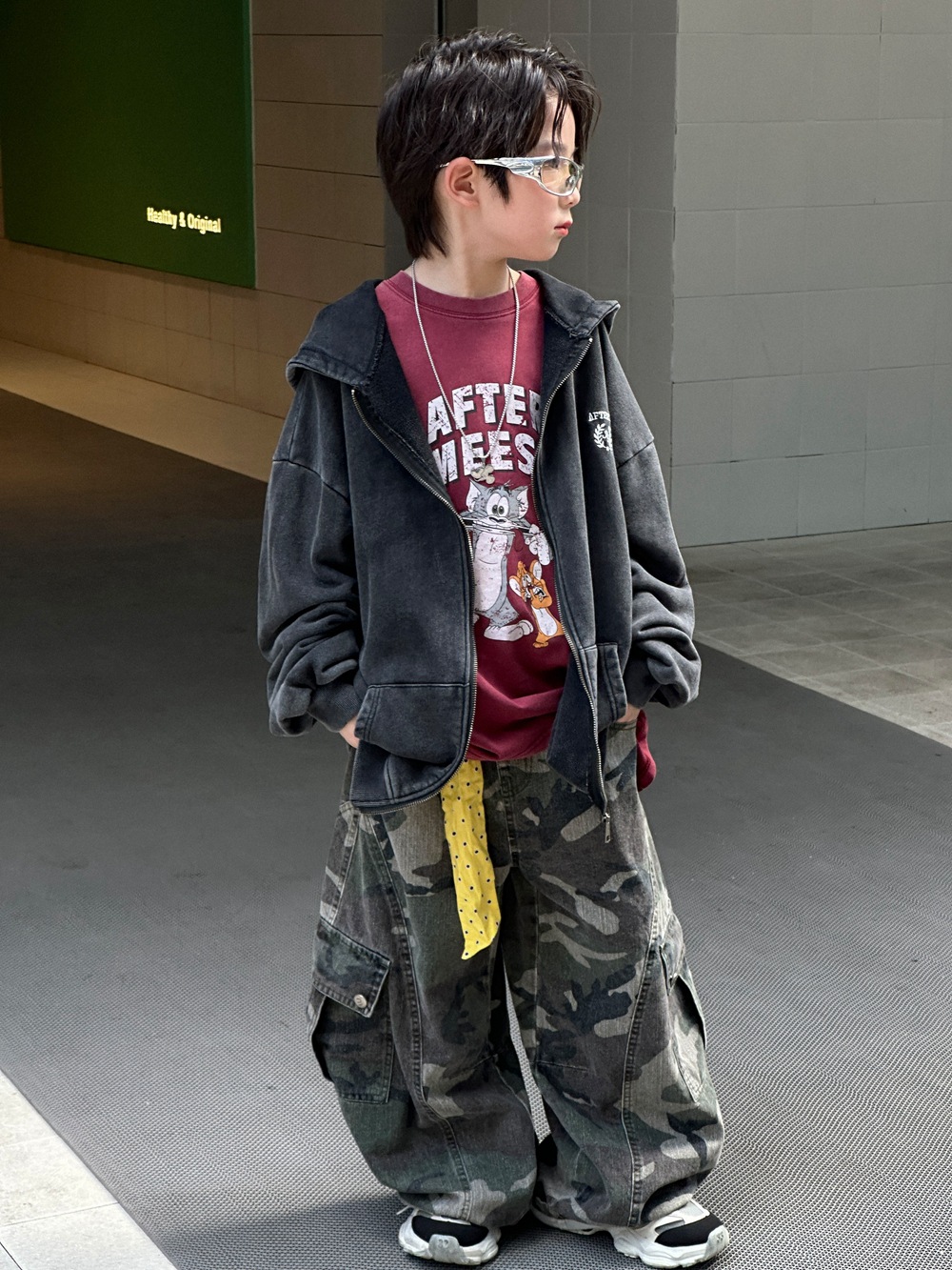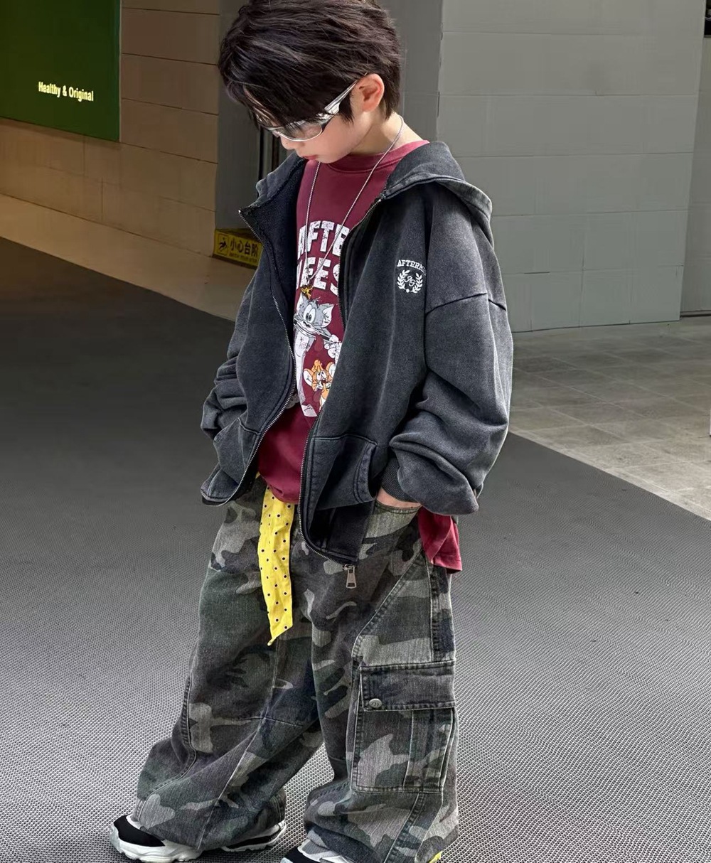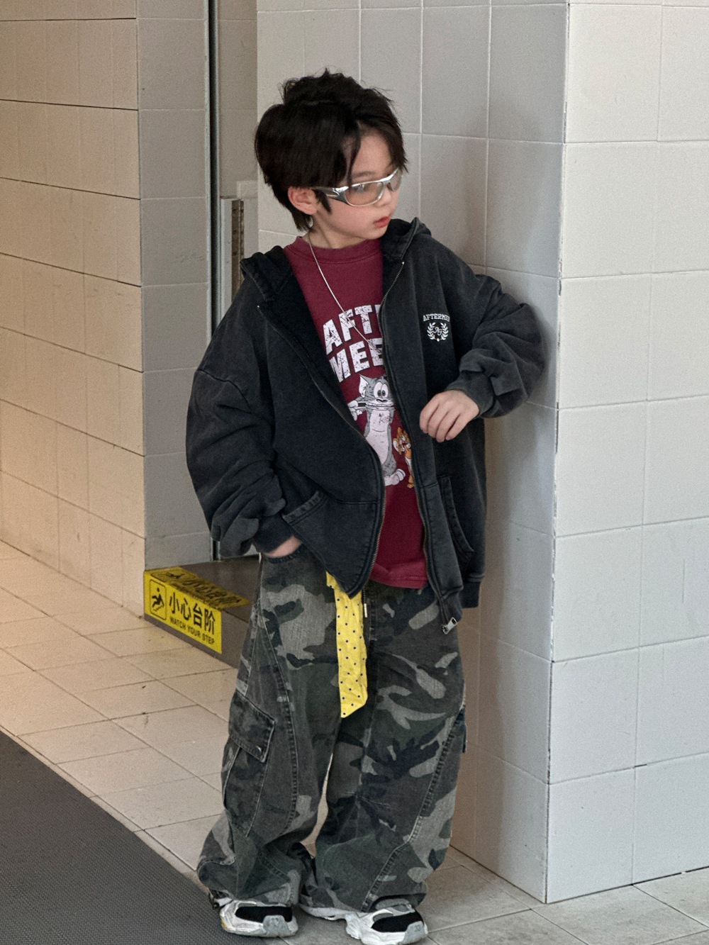 新尔2025秋季新款重工洗褪做旧迷彩夹克儿童宽松阔版外套纯棉男童
