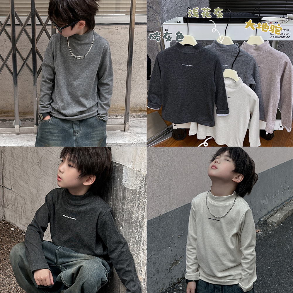 新爾2024冬はカシミヤとベルベットの高弾の中襟の底のシャツの一体の絨毛の男の子の女の子の保温の底の服をまねます。