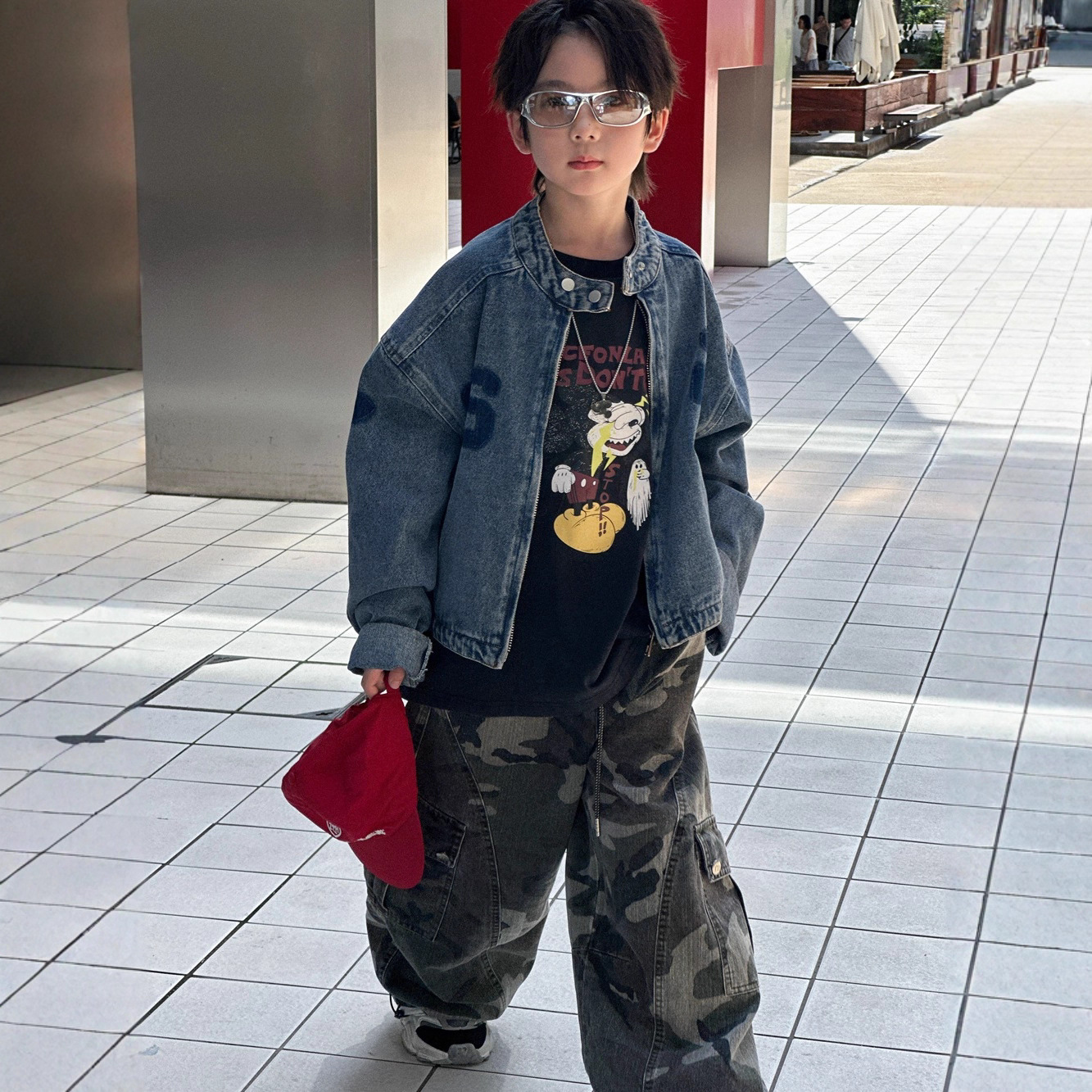 新尔2025秋季新款立领短款牛仔夹克儿童牛仔外套男童女童洋气上衣