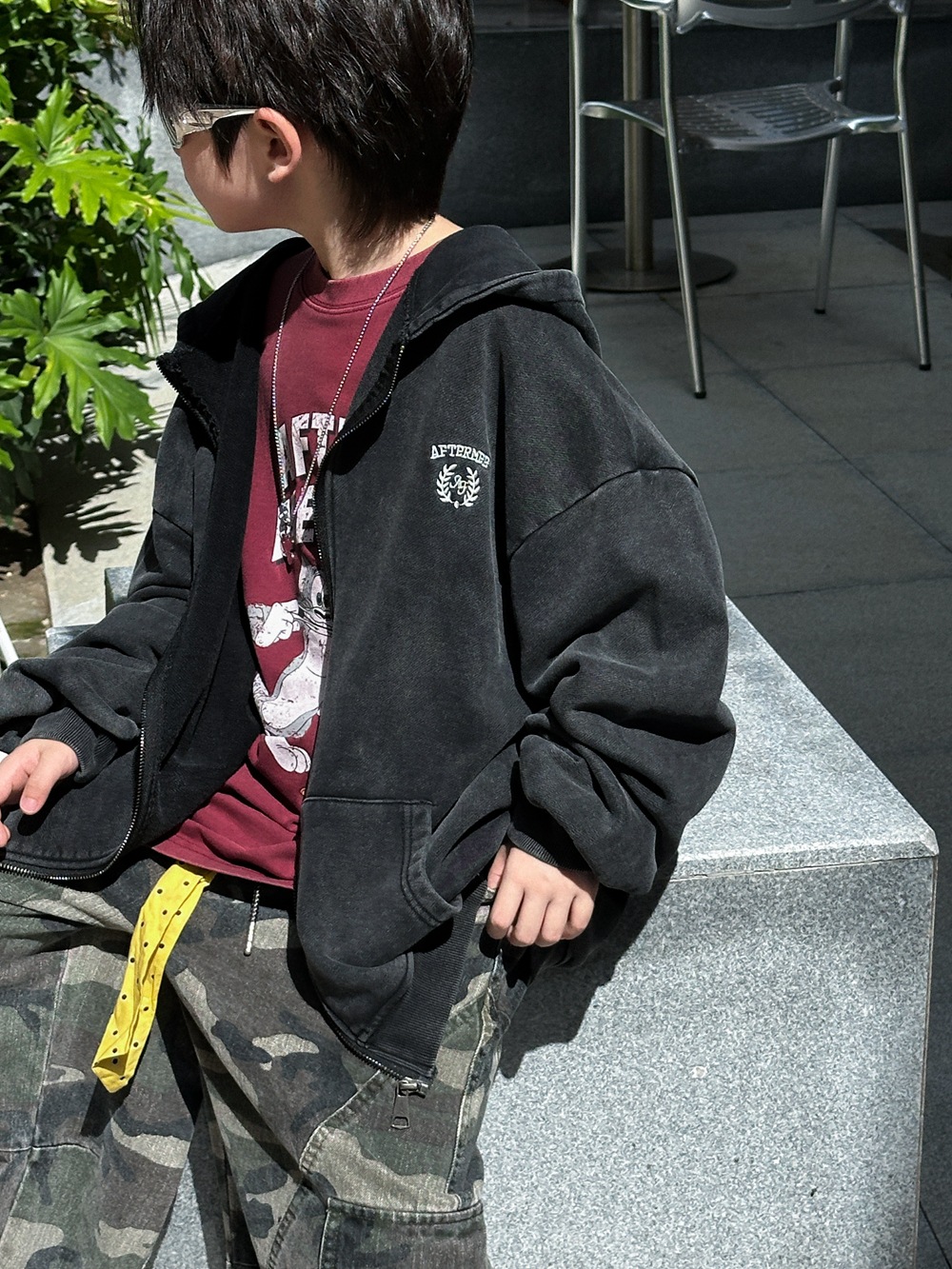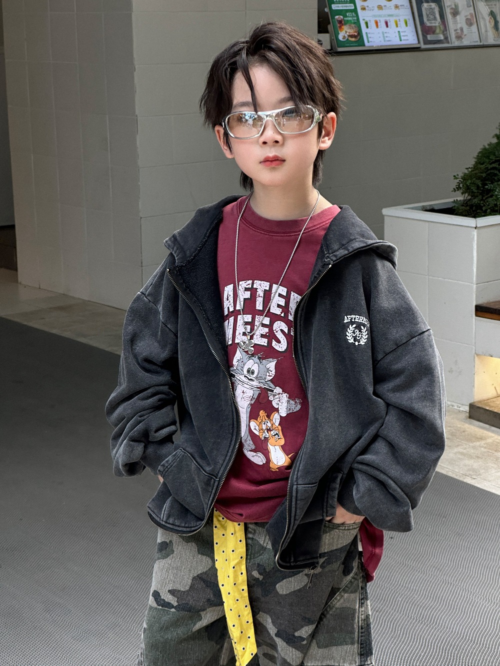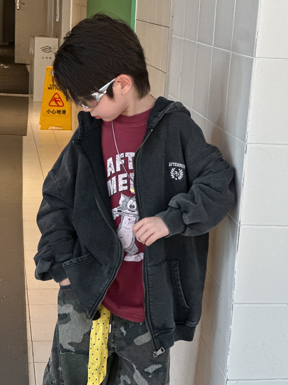 新尔2025秋季新款美式做旧纯棉毛圈拉链开衫外套儿童重磅上衣男童
