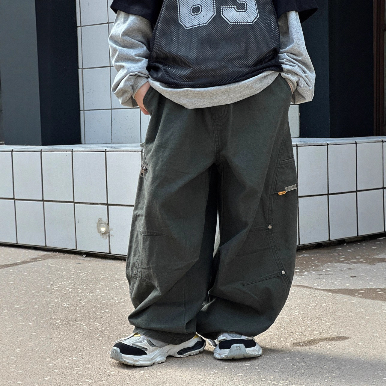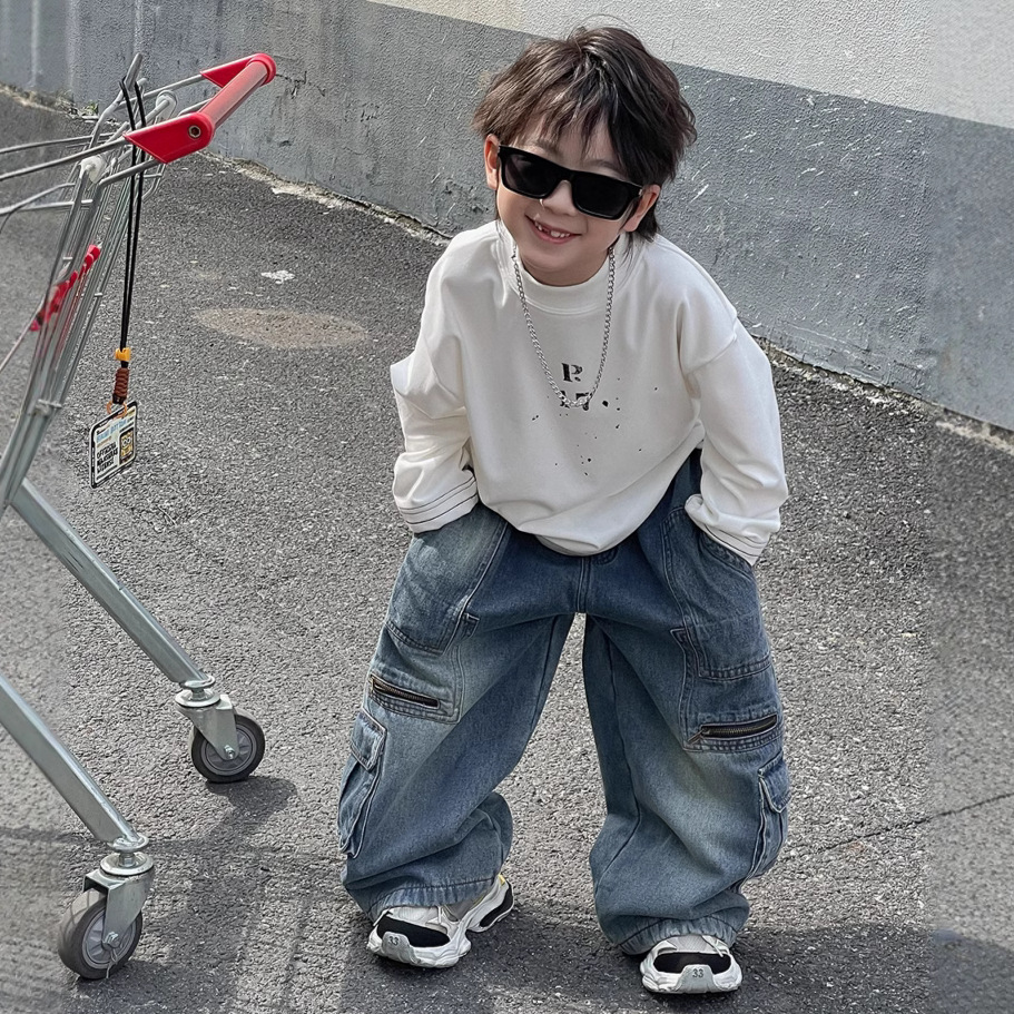 新尔2025秋季新款重工洗褪弯刀裤工装裤儿童纯棉休闲裤男童长裤潮
