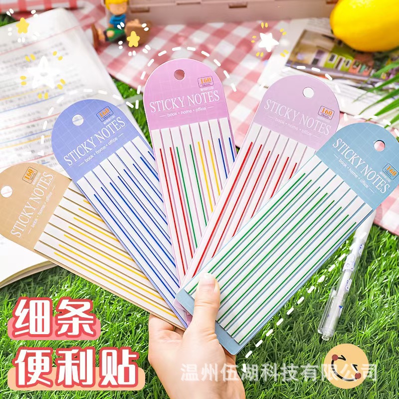 现货极细长条便利贴多巴胺配色索引贴纸学生重点标记N次便签纸条