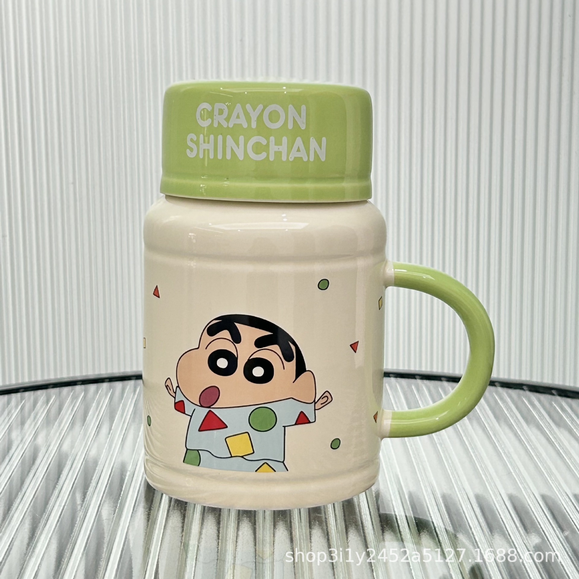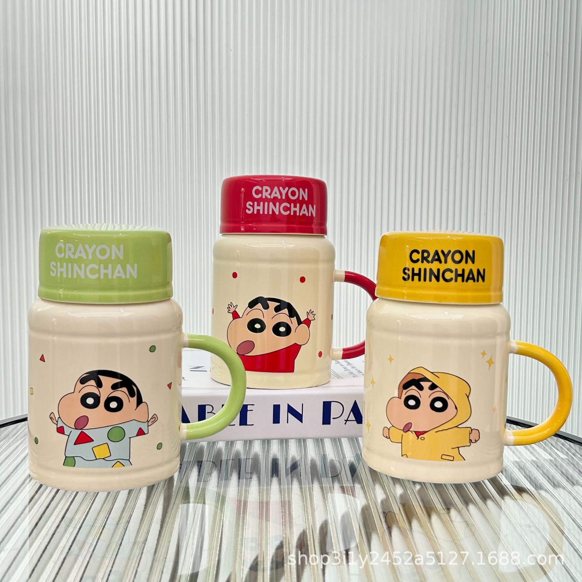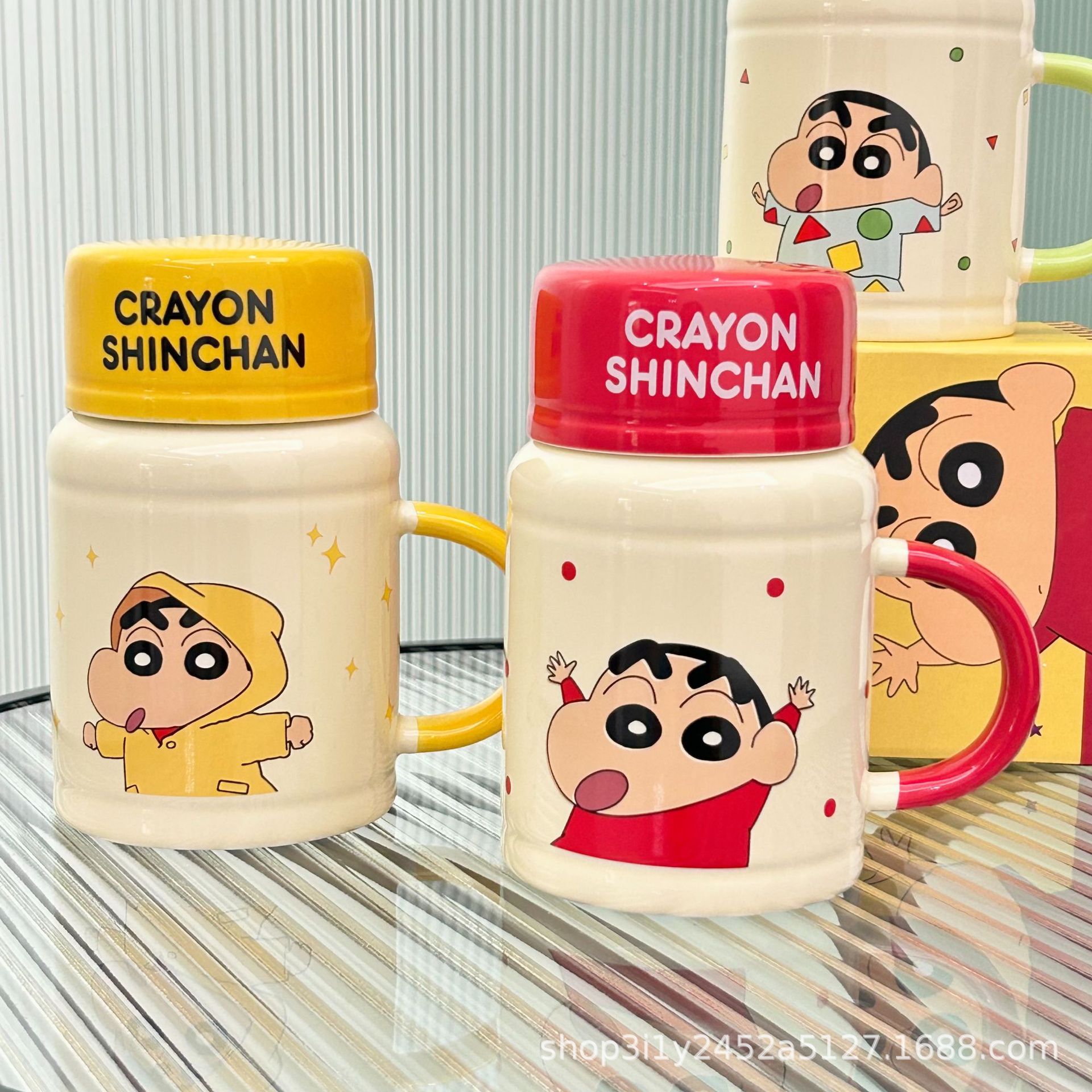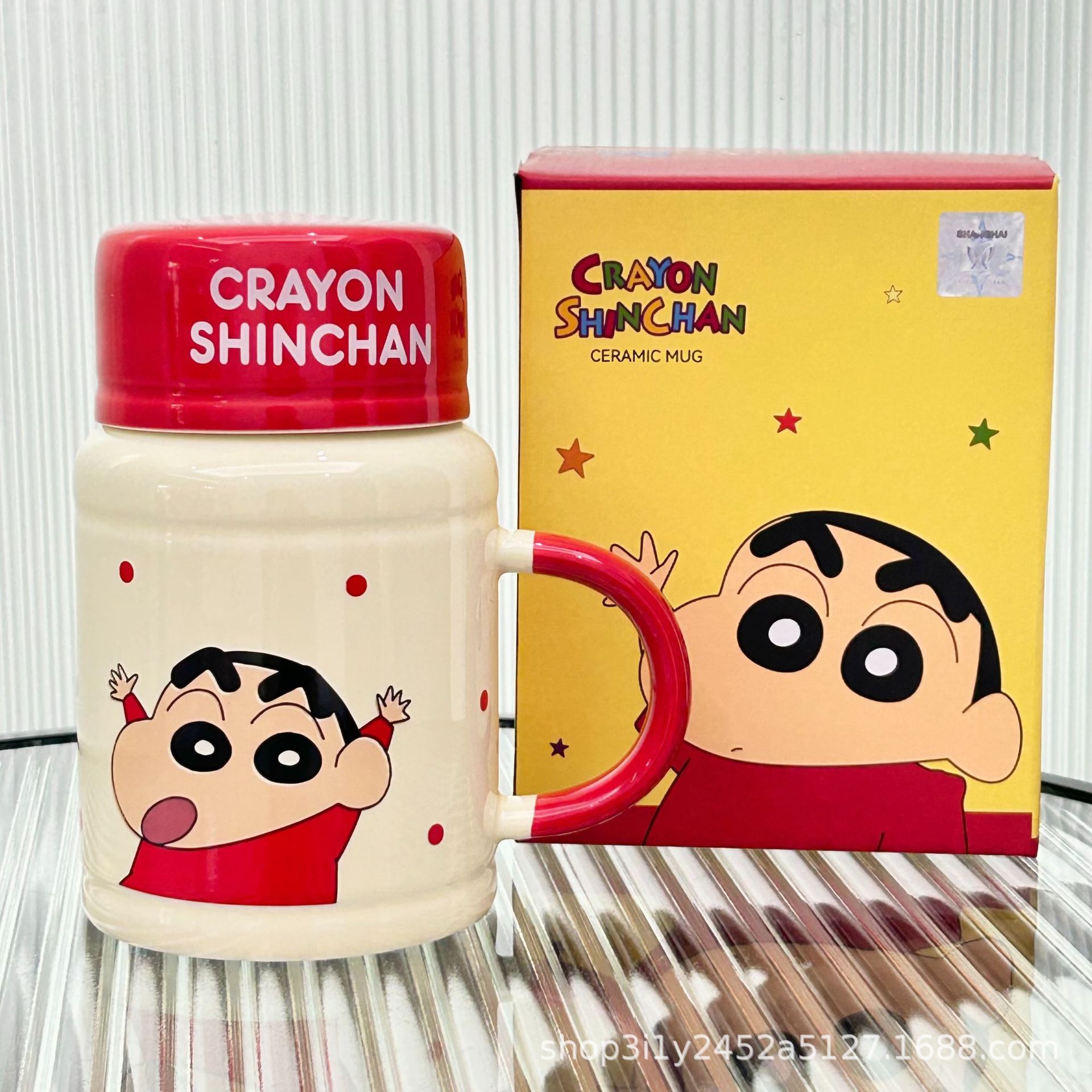 クレヨンしんちゃん高颜値セラミックマグカップ大容量カバー付きオフィスカップ子供クリエイティブ誕生日プレゼント