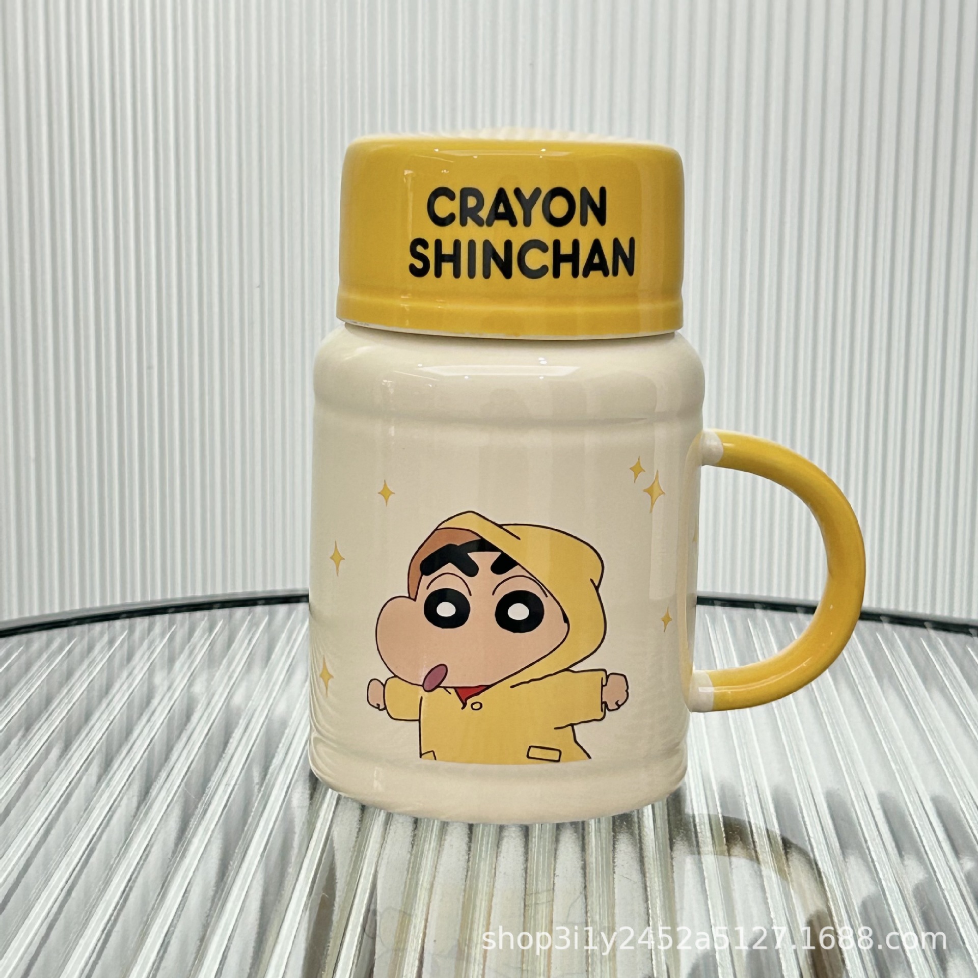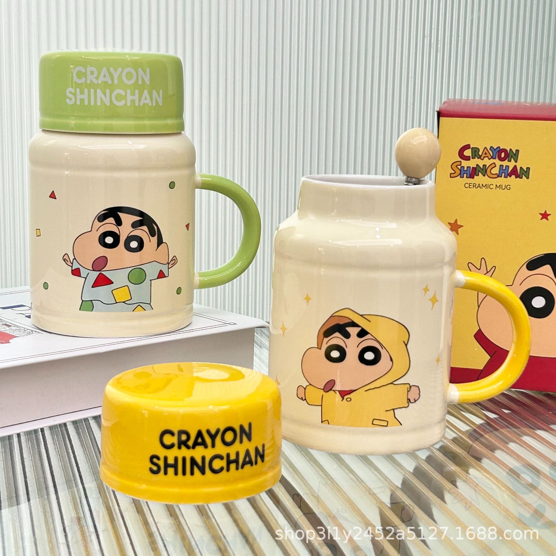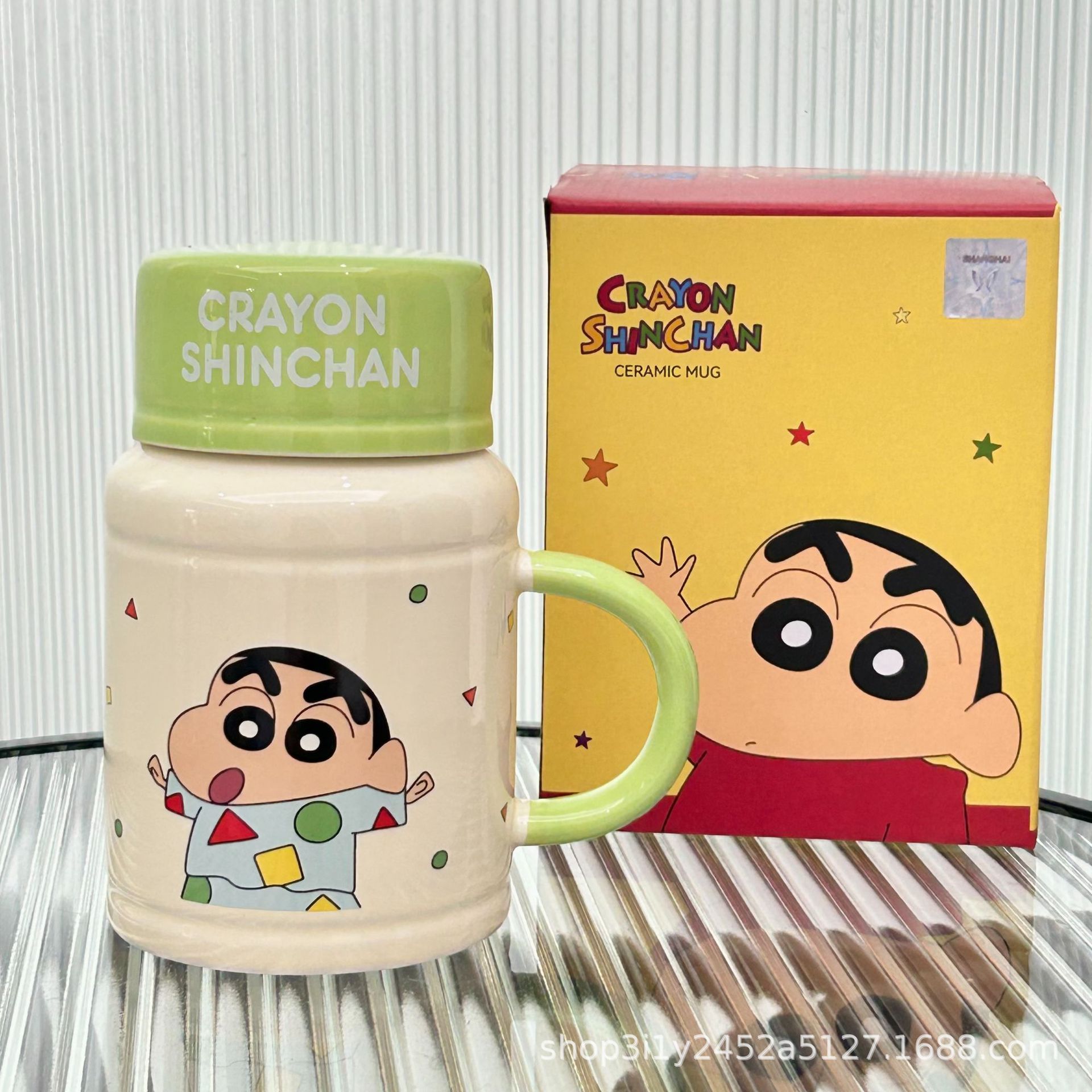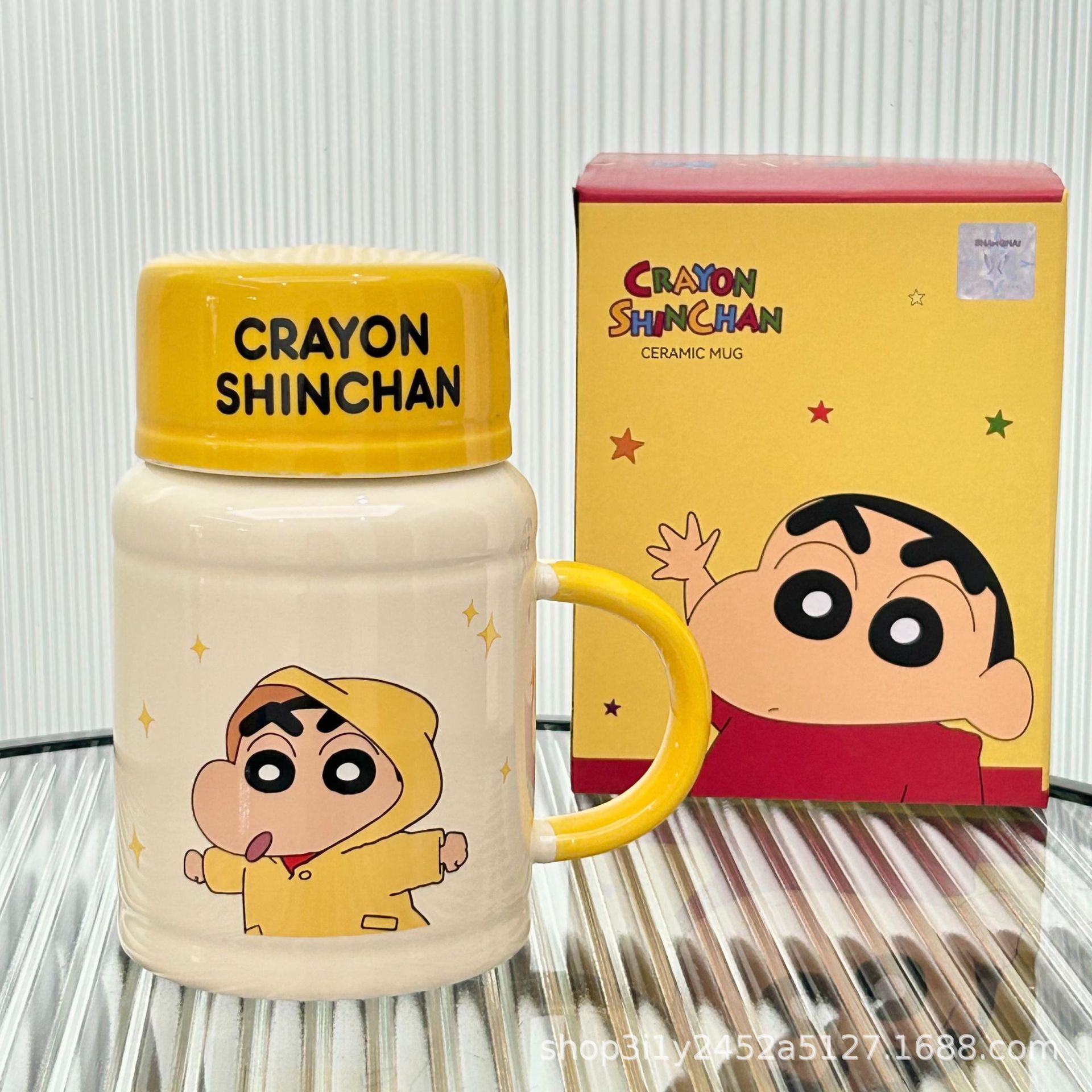 クレヨンしんちゃん高颜値セラミックマグカップ大容量カバー付きオフィスカップ子供クリエイティブ誕生日プレゼント