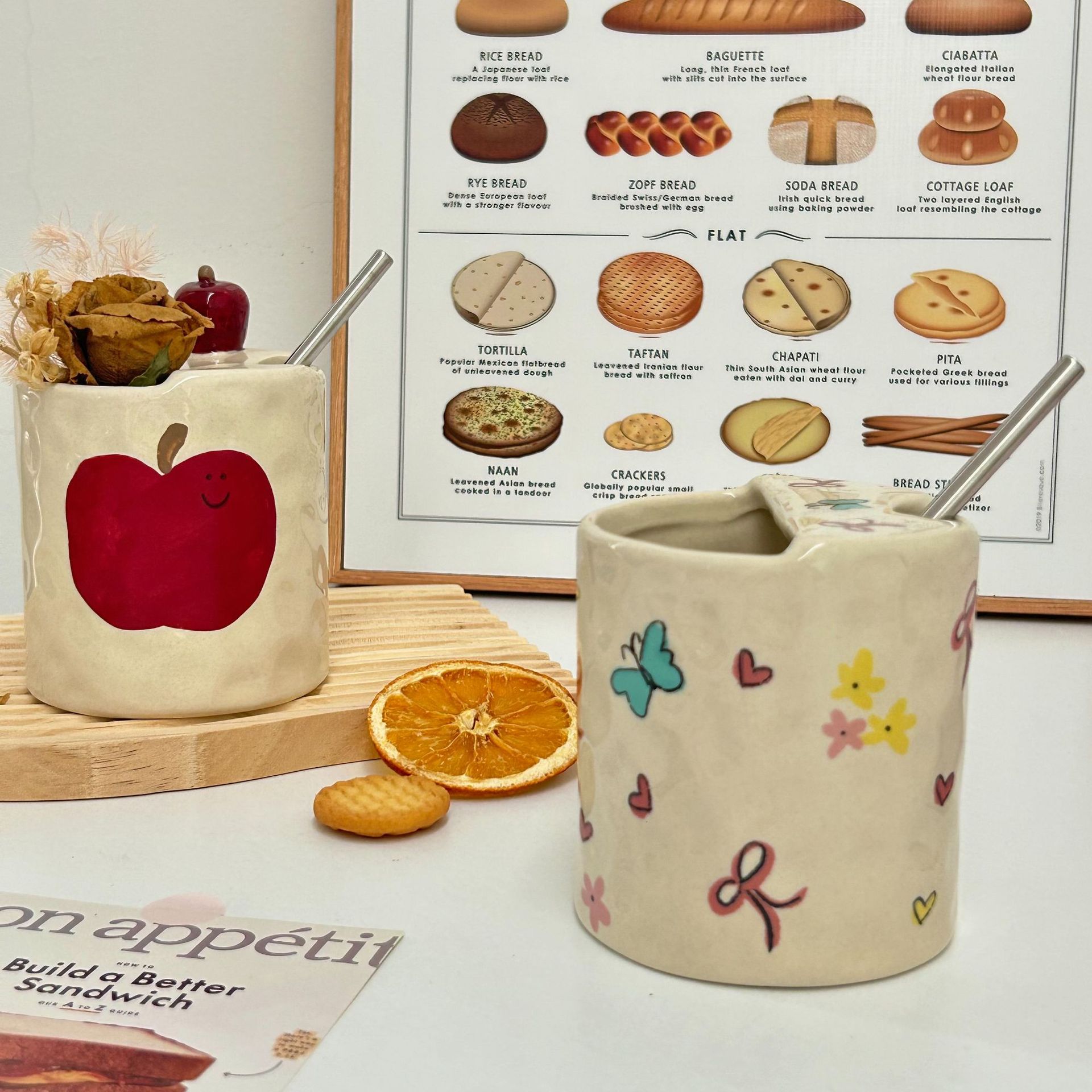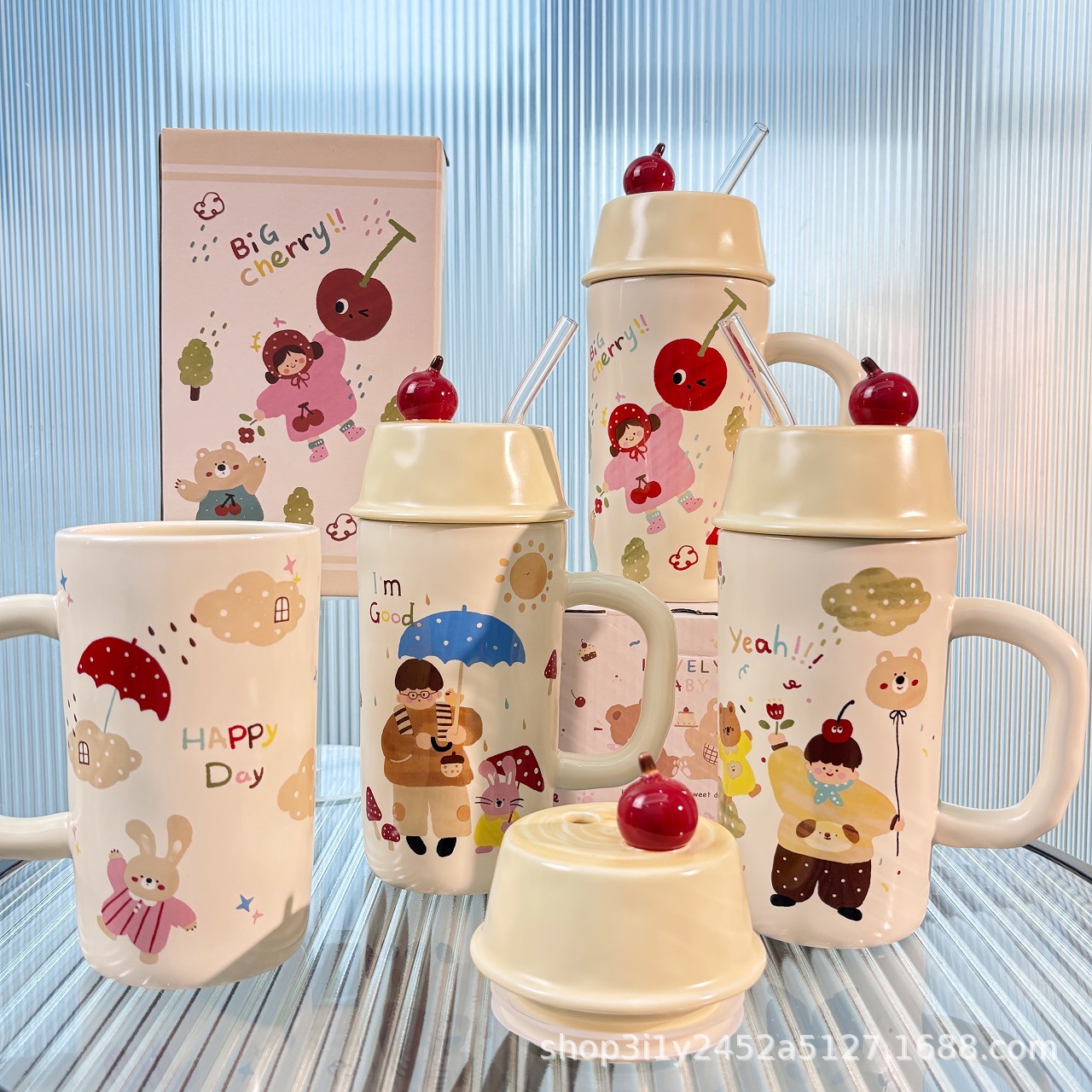奶油风大容量陶瓷马克杯带盖吸管杯女生高颜值喝水杯情侣伴手礼