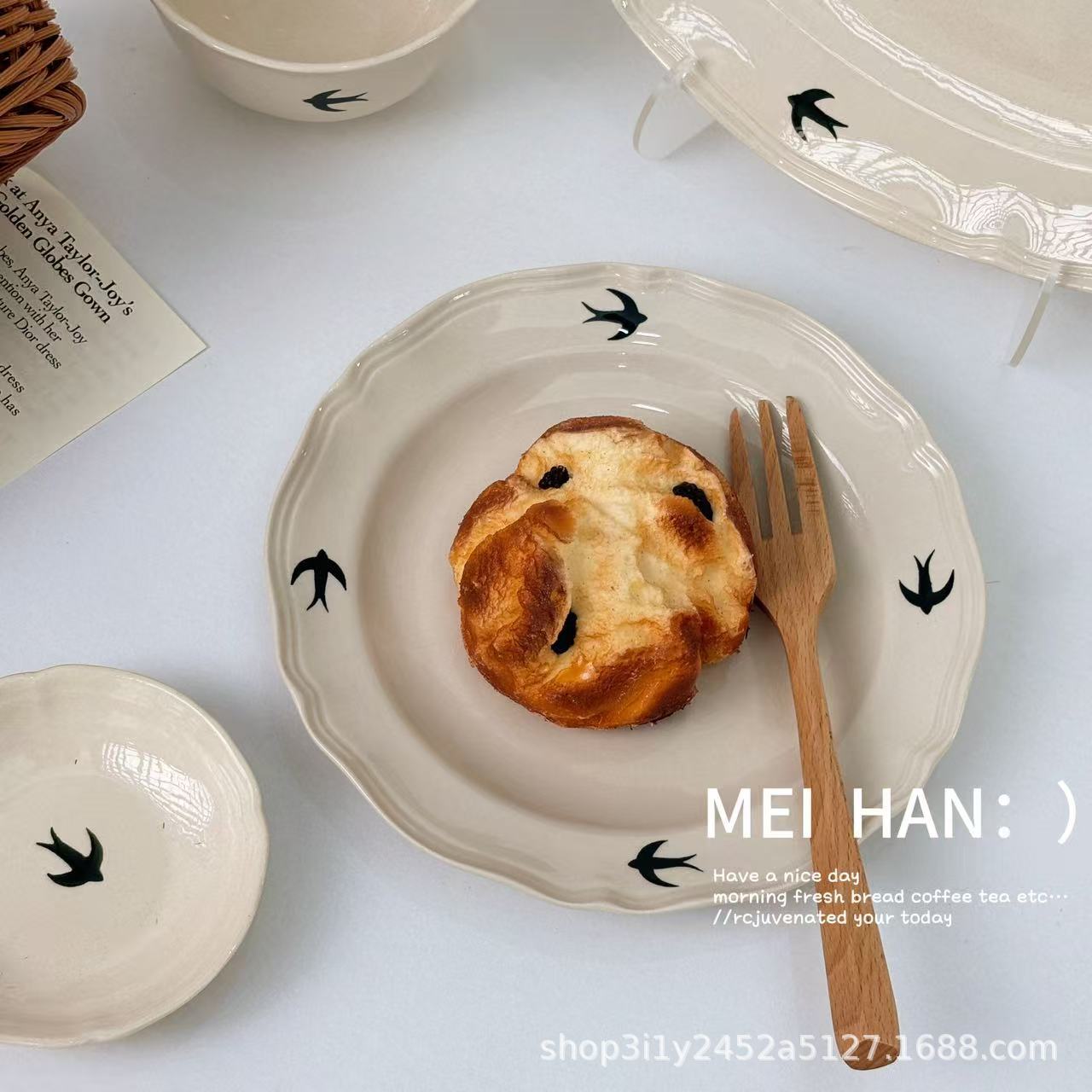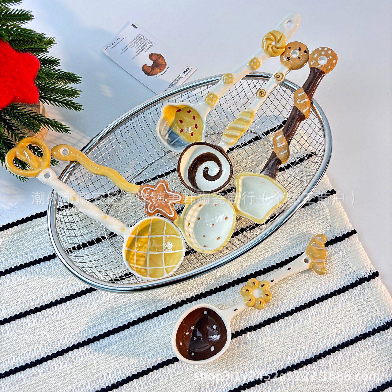 かわいいパン陶器食器セット クリーム風 高価値釉下色 家庭用食器 皿 スプーンセット