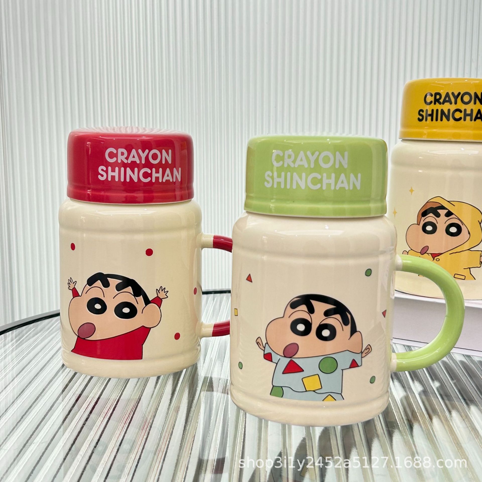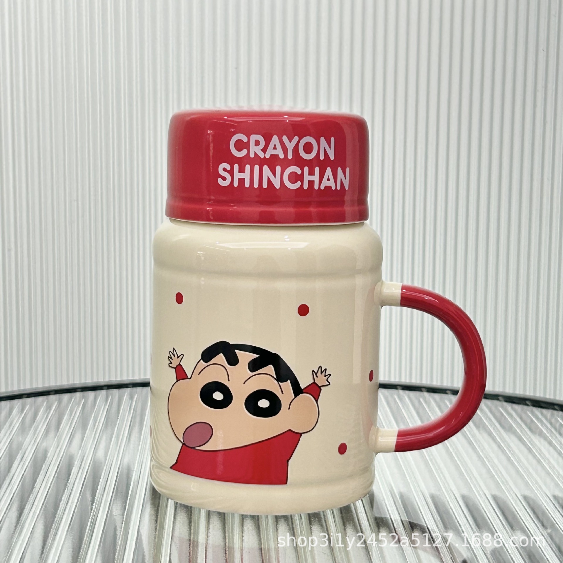 クレヨンしんちゃん漫画セラミックマグカップ大容量蓋付きオフィスカップかわいいコーヒーカップミルクカップ