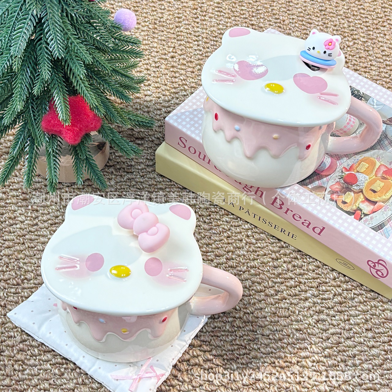 可爱kitty猫咪陶瓷马克杯带盖高颜值女生喝水杯生日礼物伴手礼
