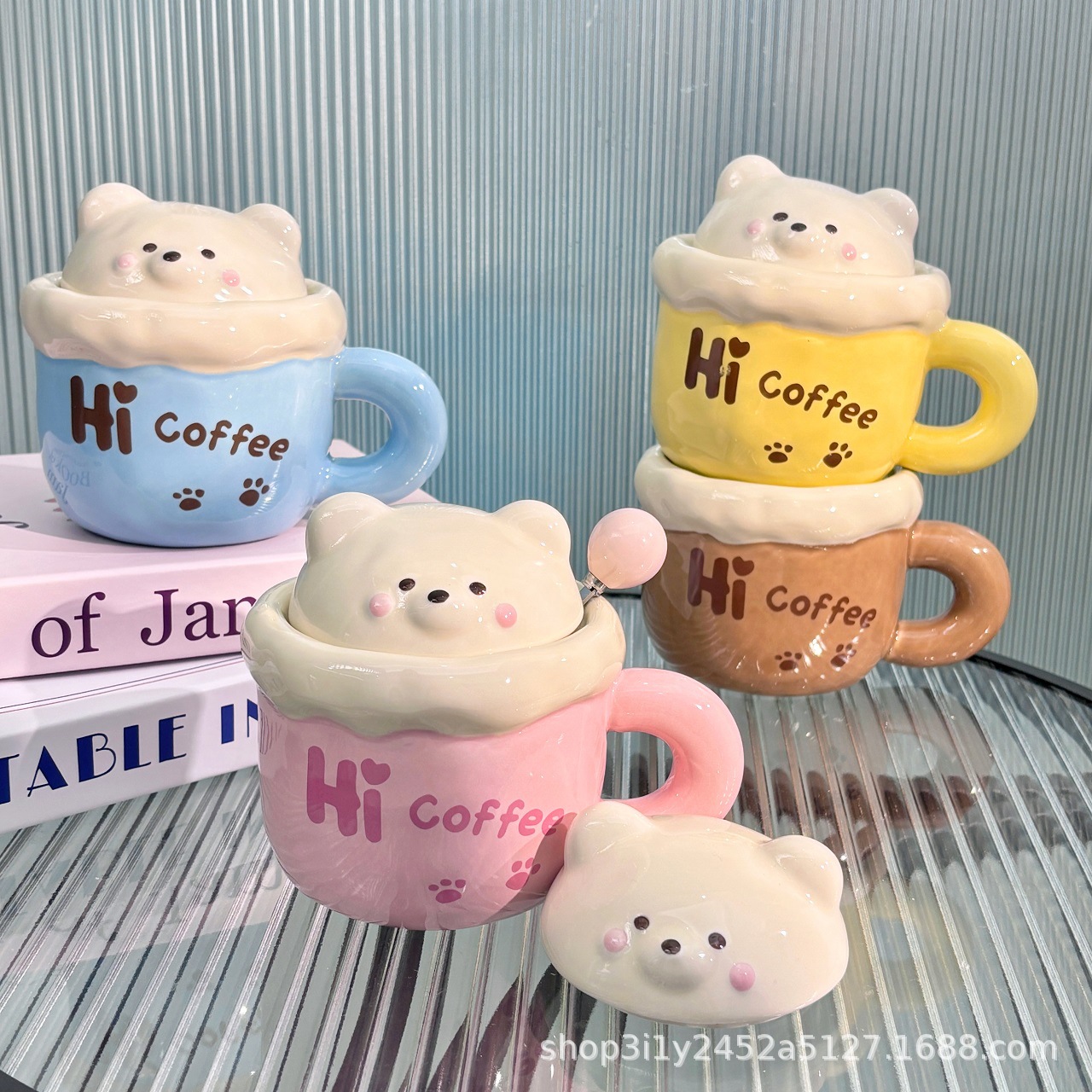 可爱小熊马克杯家用陶瓷喝水杯带盖卡通高颜值伴手礼生日礼物送人