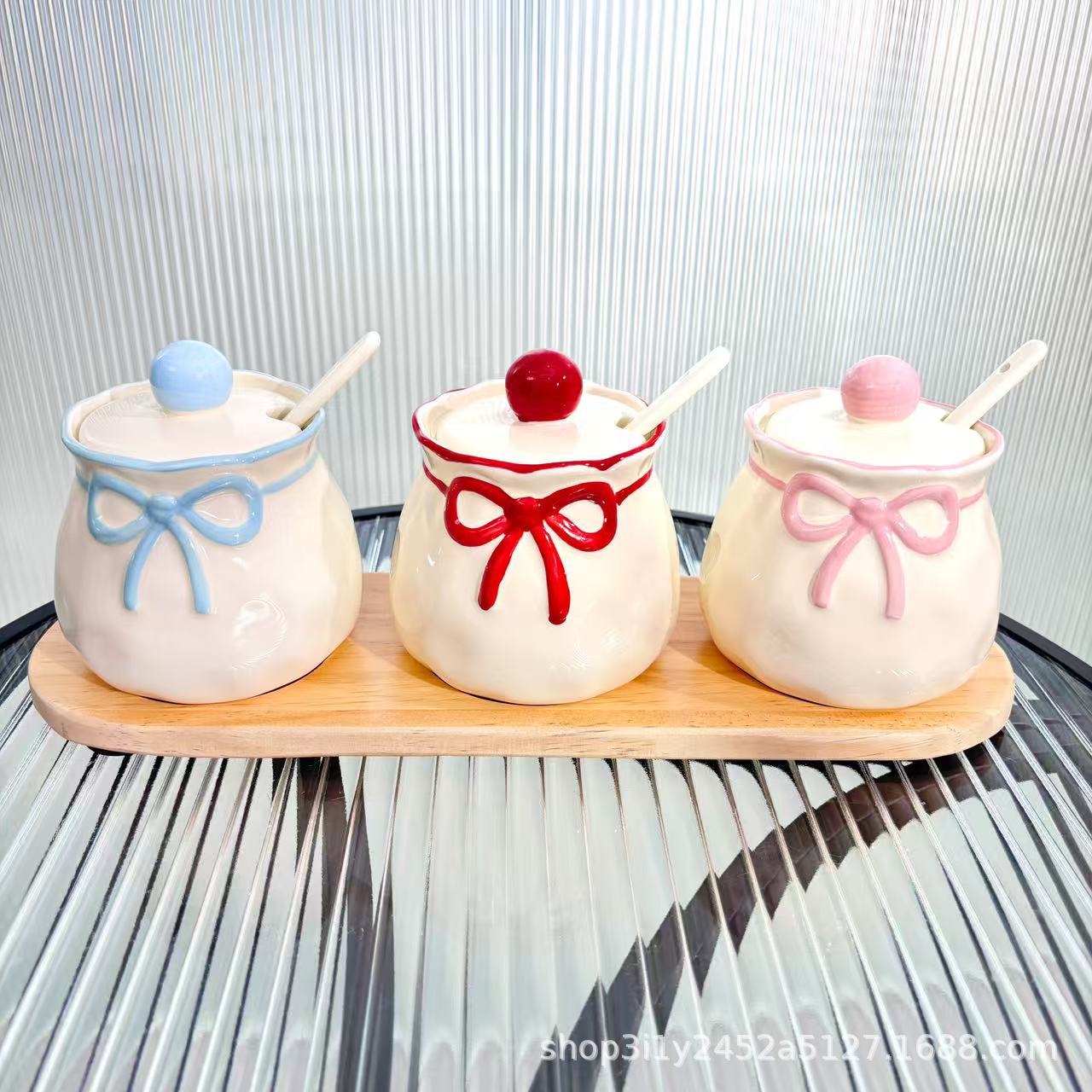 高颜值蝴蝶结陶瓷调料瓶组合家用厨房辣椒味精盐罐佐料调味瓶套装