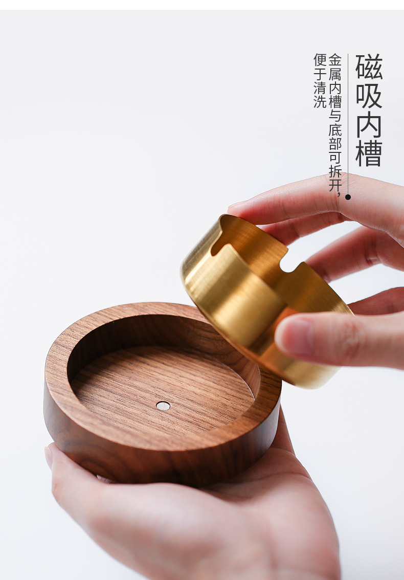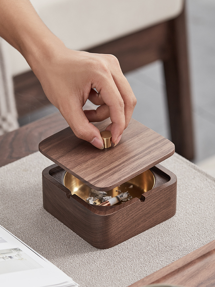 新款胡桃木中式风防飞灰烟灰缸实木创新家用设计办公室酒店红木茶