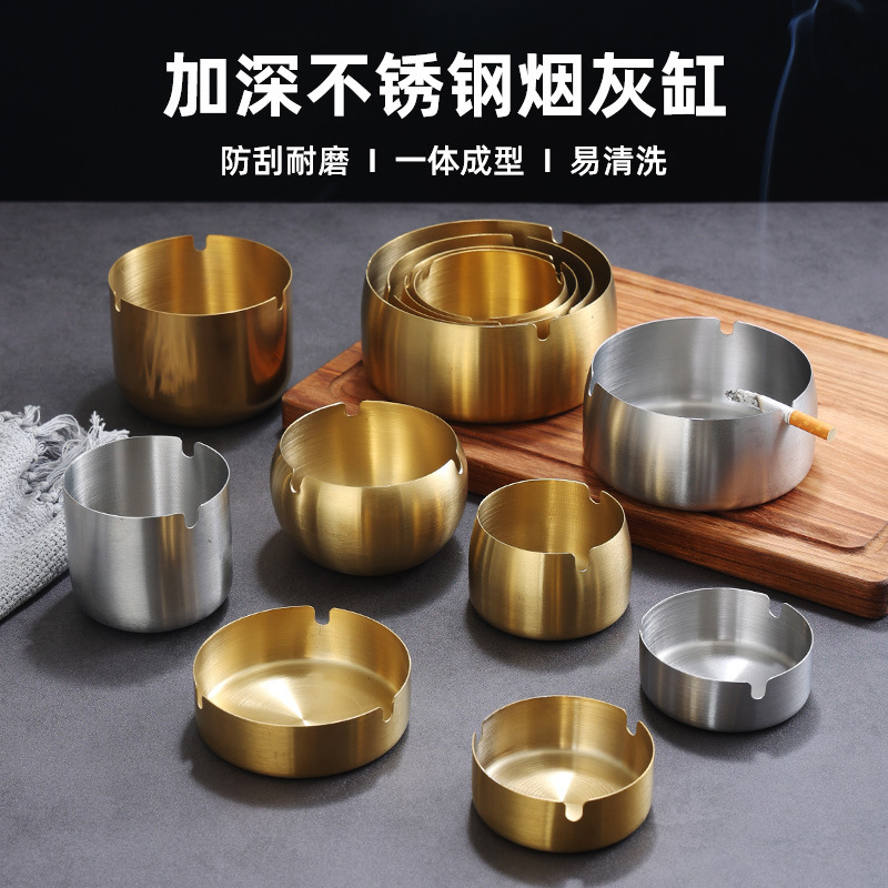 密文代发 跨境贴标签 实木烟灰缸不锈钢高级中式家用酒店酒楼烟缸