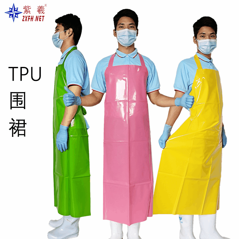 上海現物紫2037エプロンtpu防水防油エプロン異臭食品工場エプロン