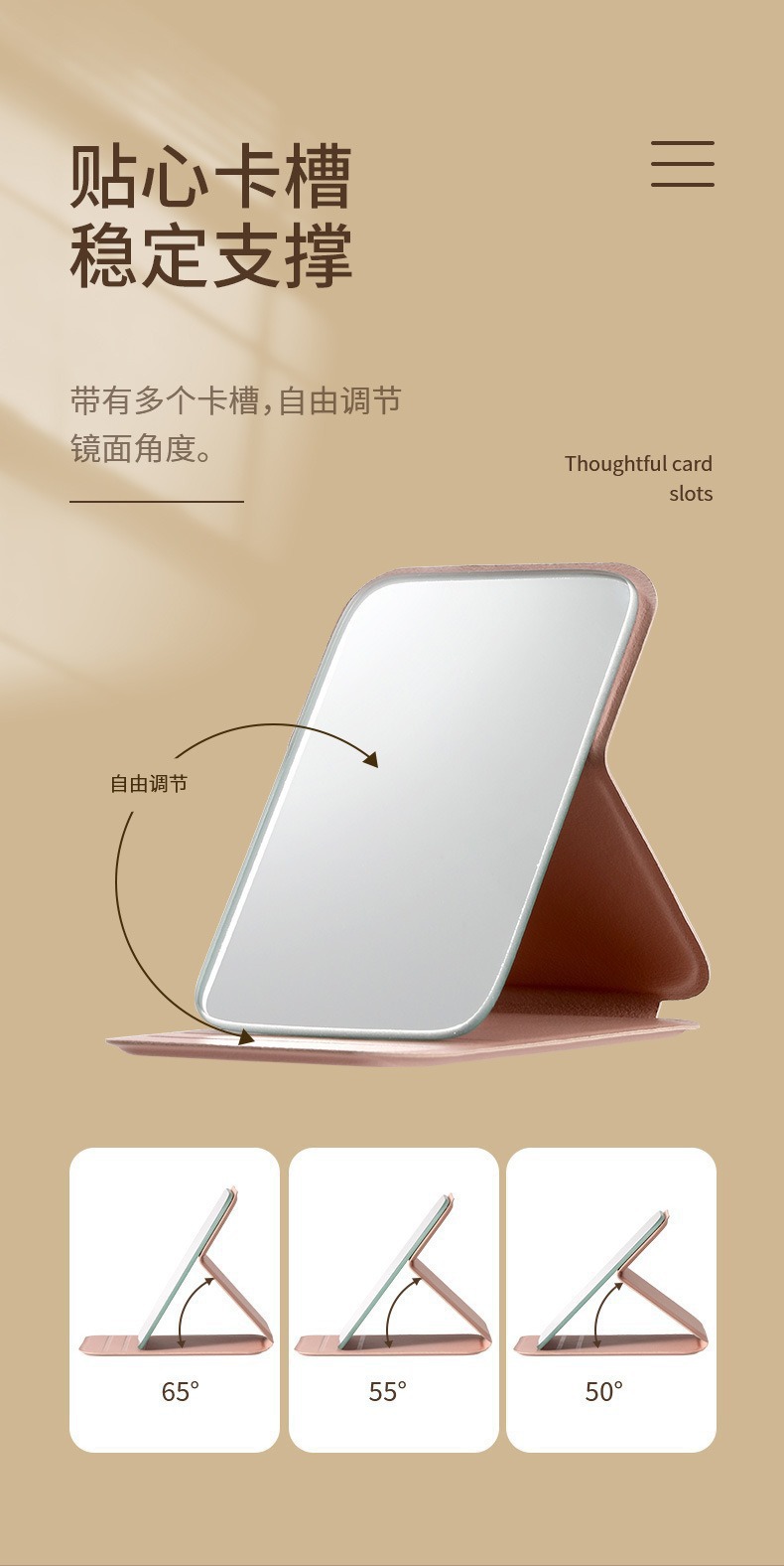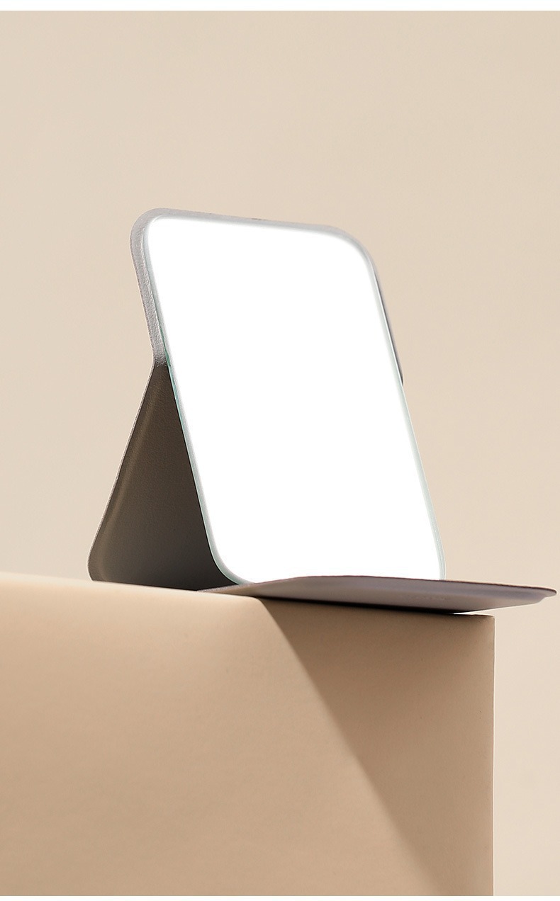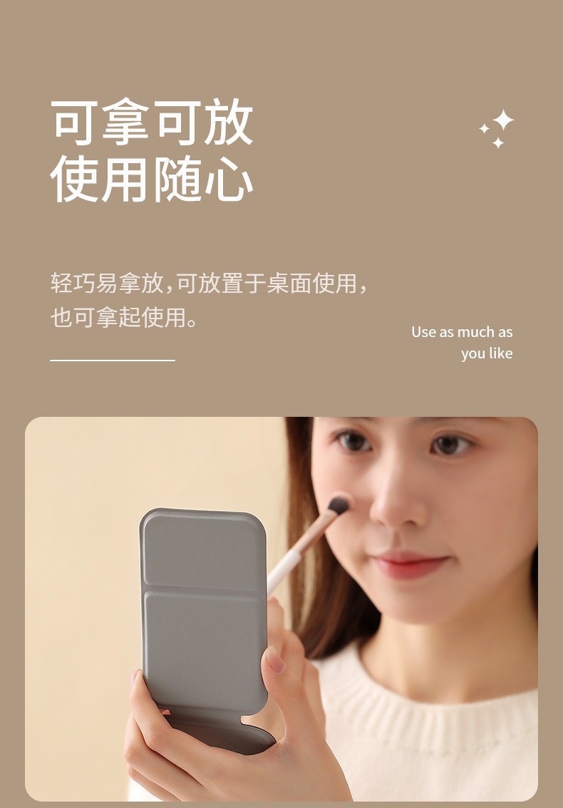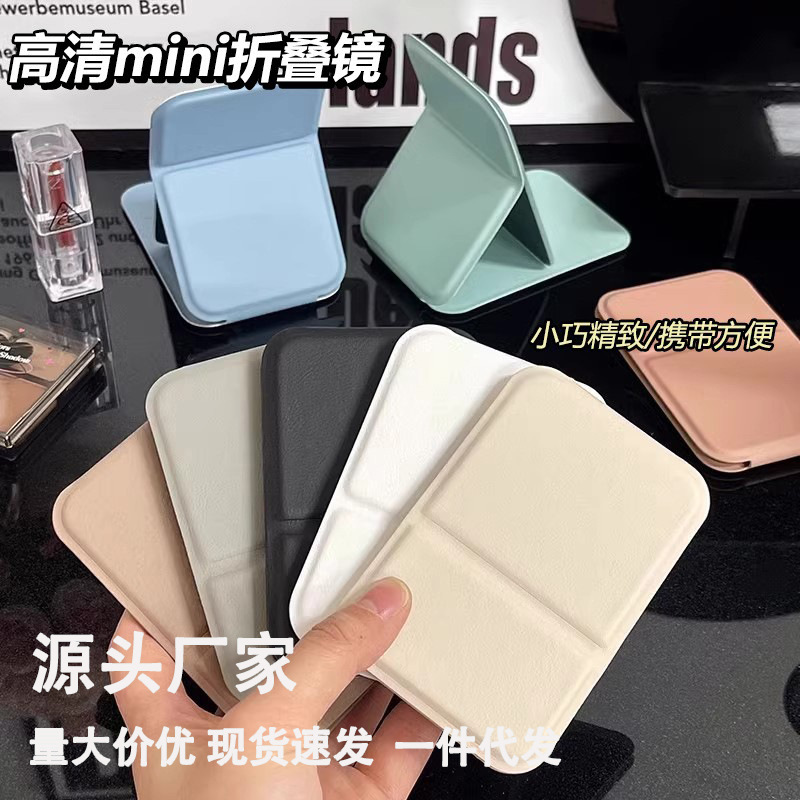 PU迷你桌面折叠小镜子学生宿舍可立梳妆镜女生随身便携化妆镜