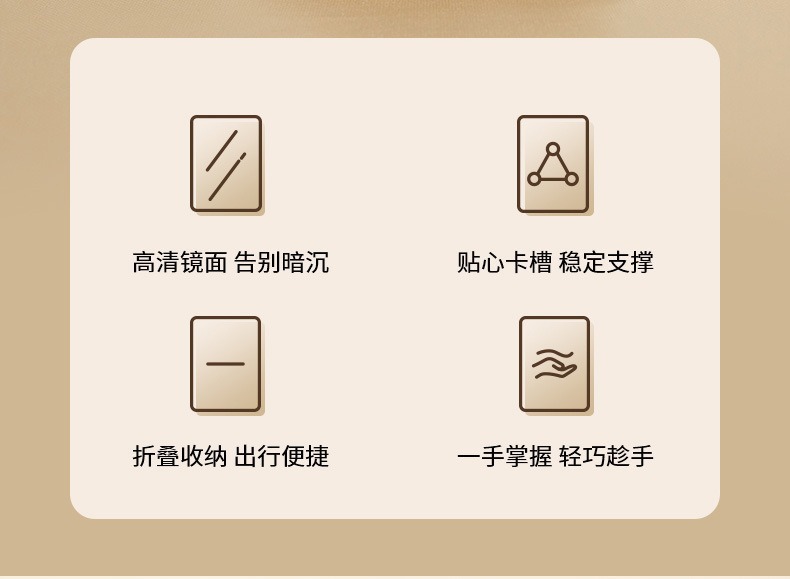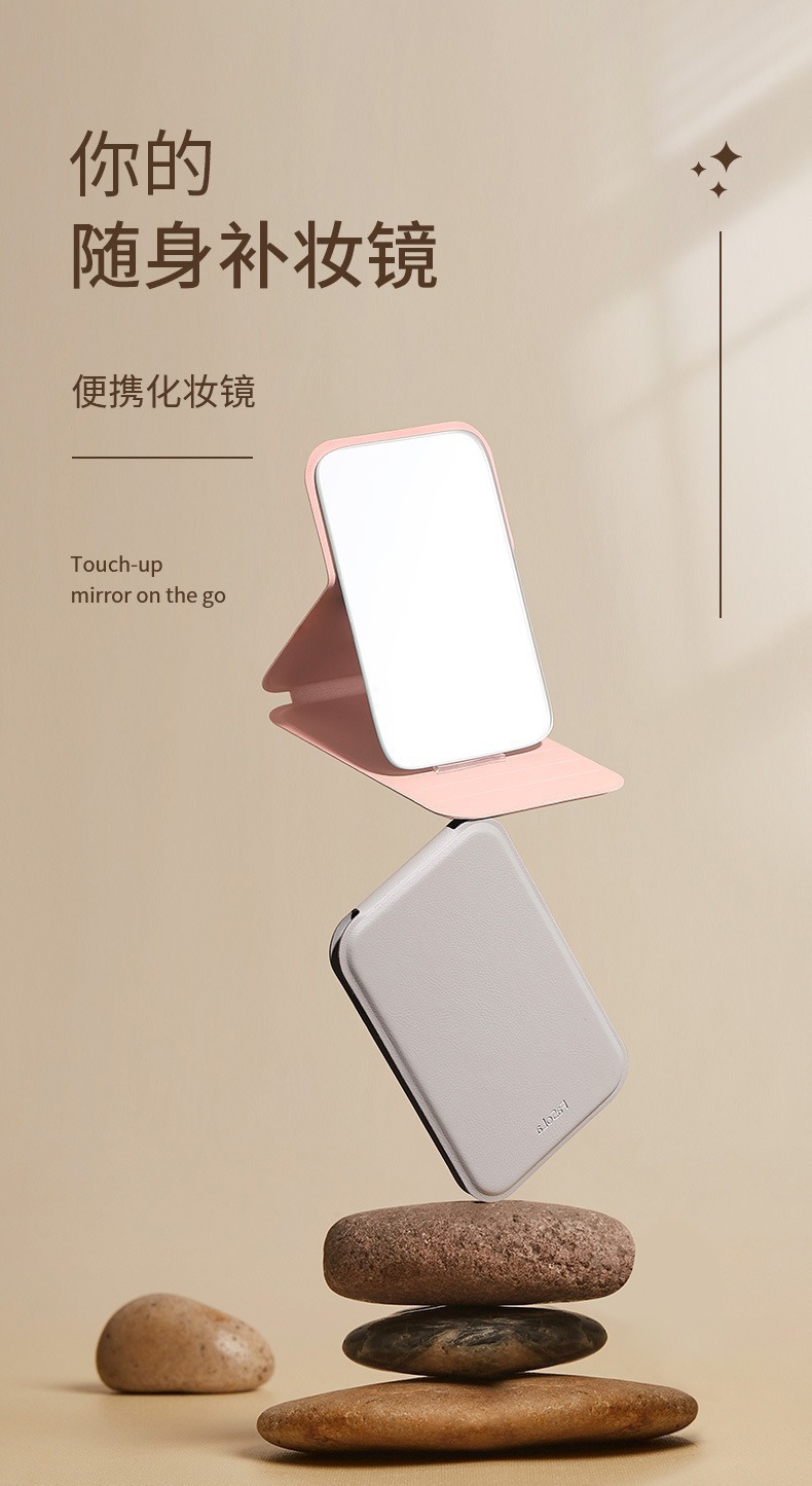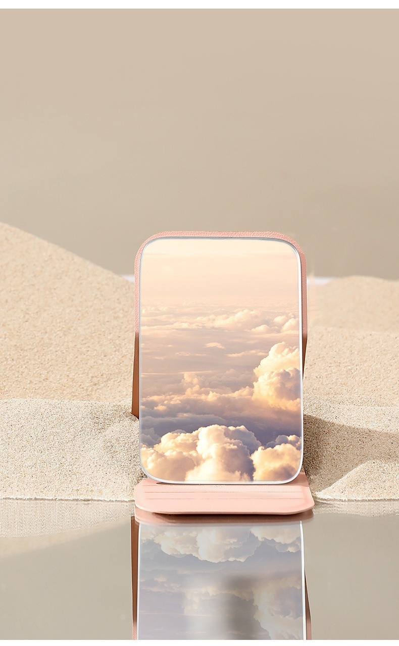 PU迷你桌面折叠小镜子学生宿舍可立梳妆镜女生随身便携化妆镜