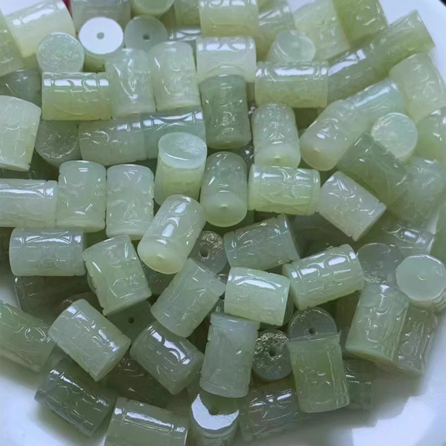 和田玉平桶珠浅晴水diy手工配饰天然玉石回纹珠雕刻吊坠饰品配件