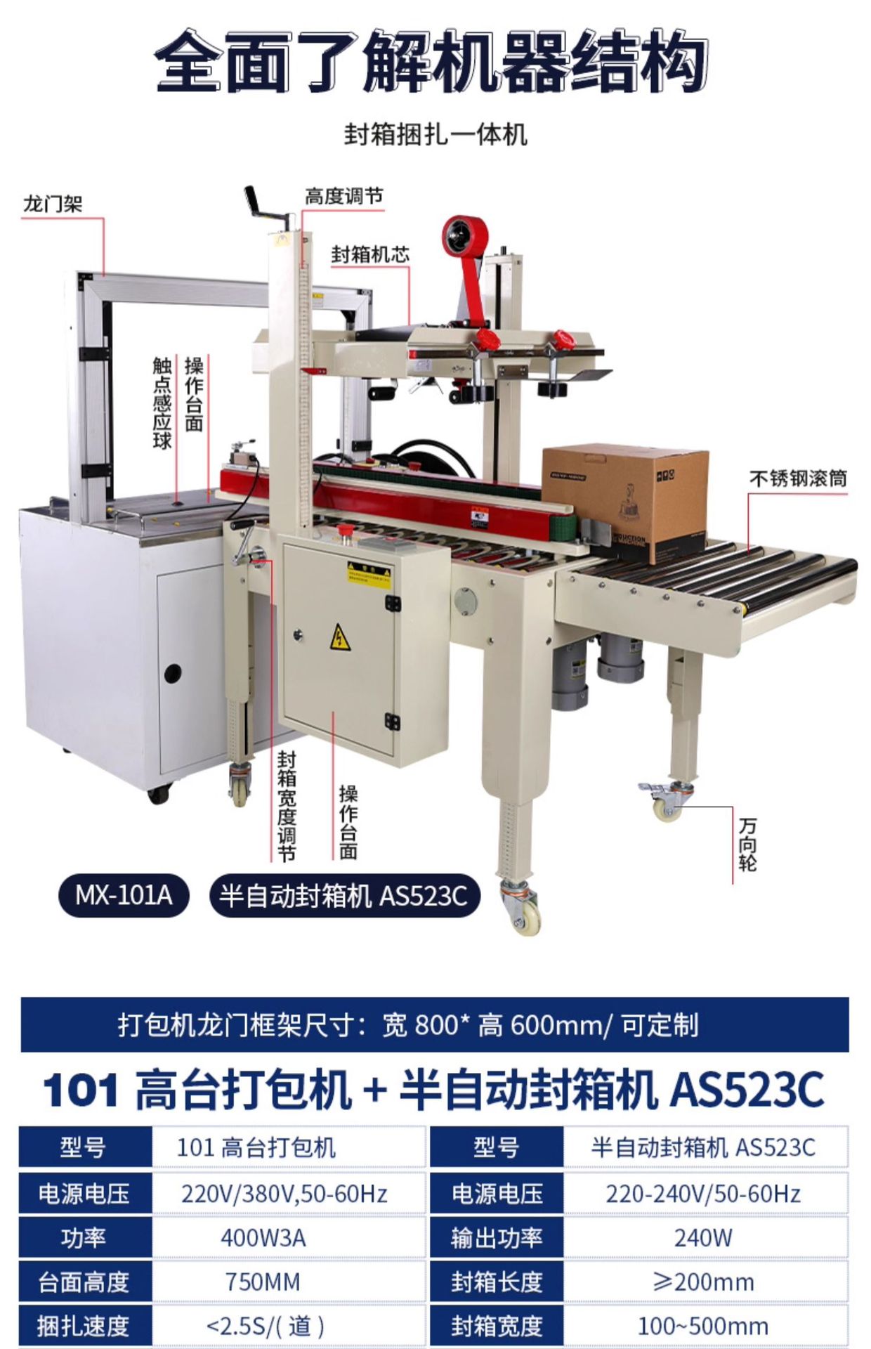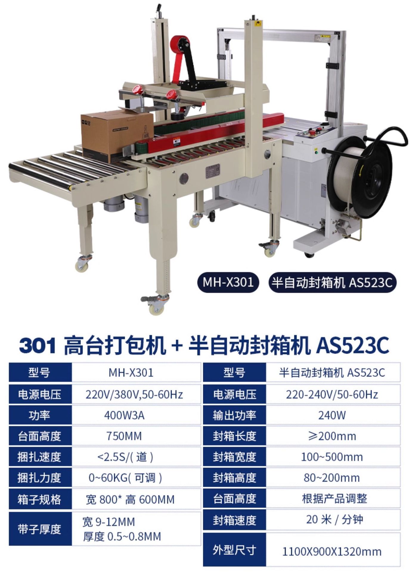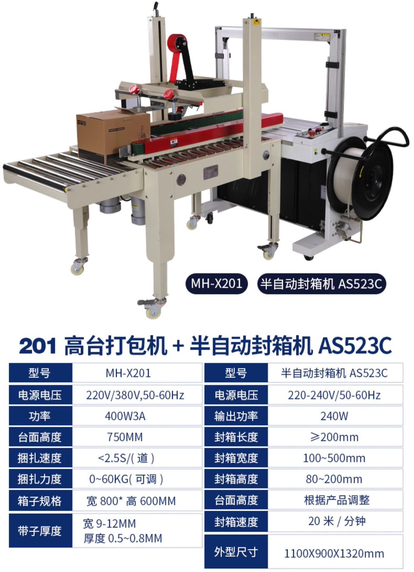 规格 MH-X101全自动打包机+AS523C联动封箱机,MH-X201全自动打包机+AS523C联动封箱机,MH-X301全自动打包机+AS523C联动封箱机,AP8060全自动打包机+AS523C联动封箱机,2020封箱机 封5-12号纸箱,高速款4030双驱动封箱机,1-12号纸箱均可封,AS523C联动封箱机