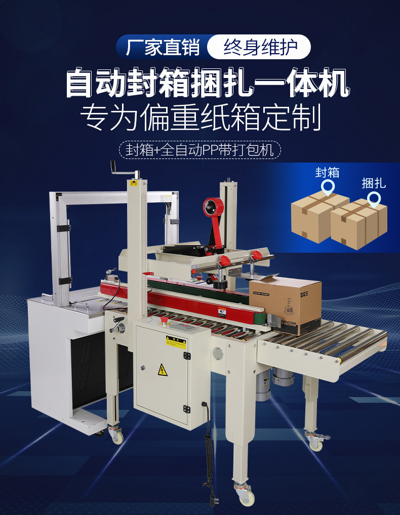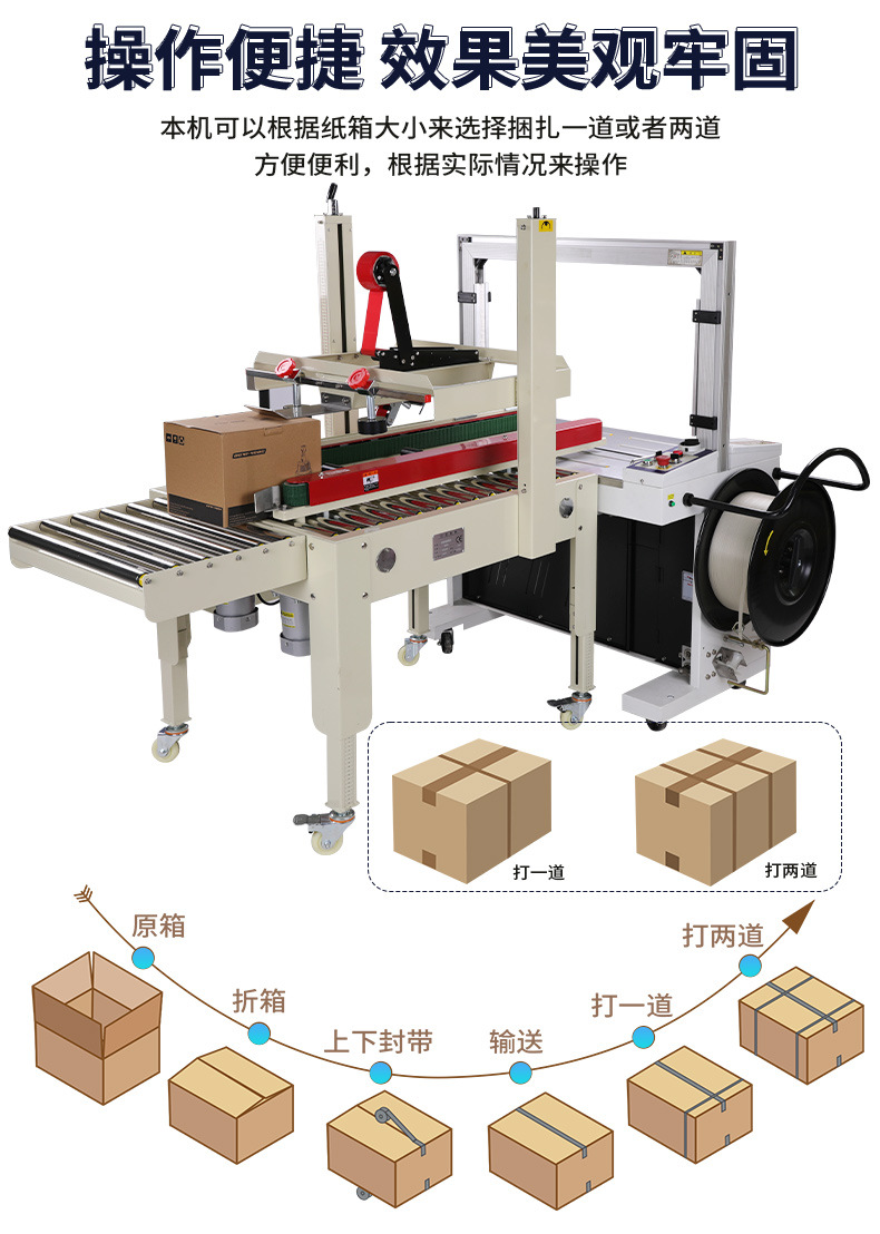 全自动封箱机捆扎带收紧一体电商快递纸箱泡沫箱胶带束带打包机