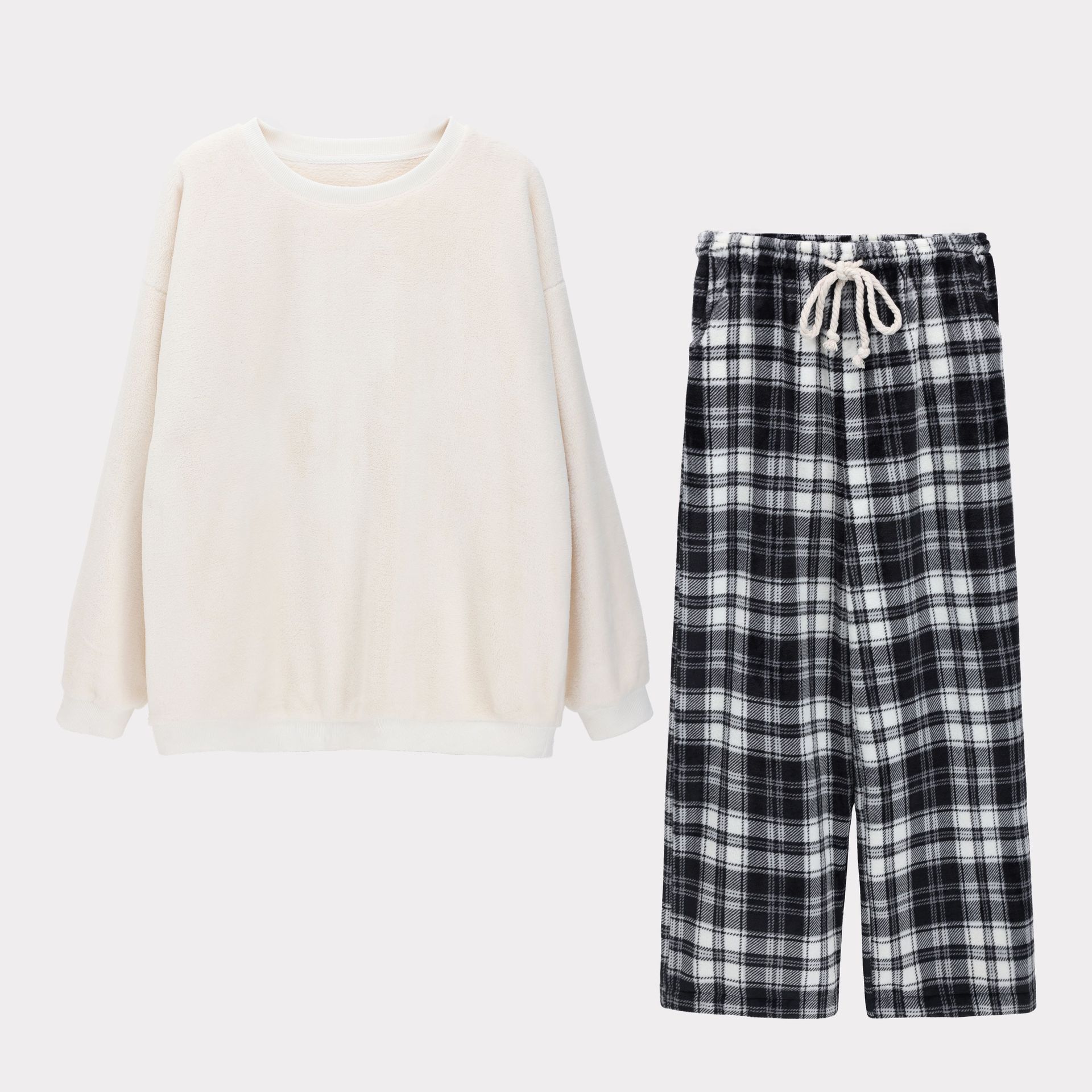 秋冬新作カップルパジャマセット両面パイル丸襟男女厚手フランネル保温ホームウェア2点セット