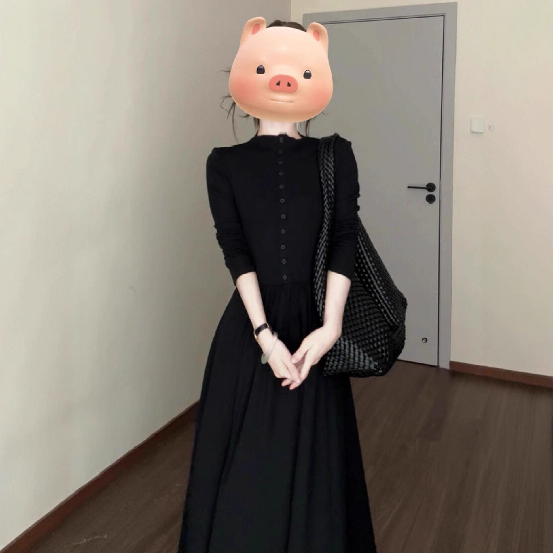法式高级感黑色连衣裙女秋季收腰显瘦赫本风小黑裙气质好看长裙子