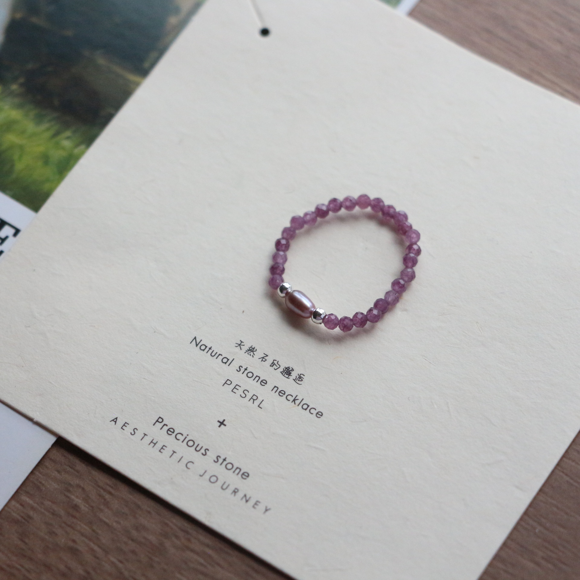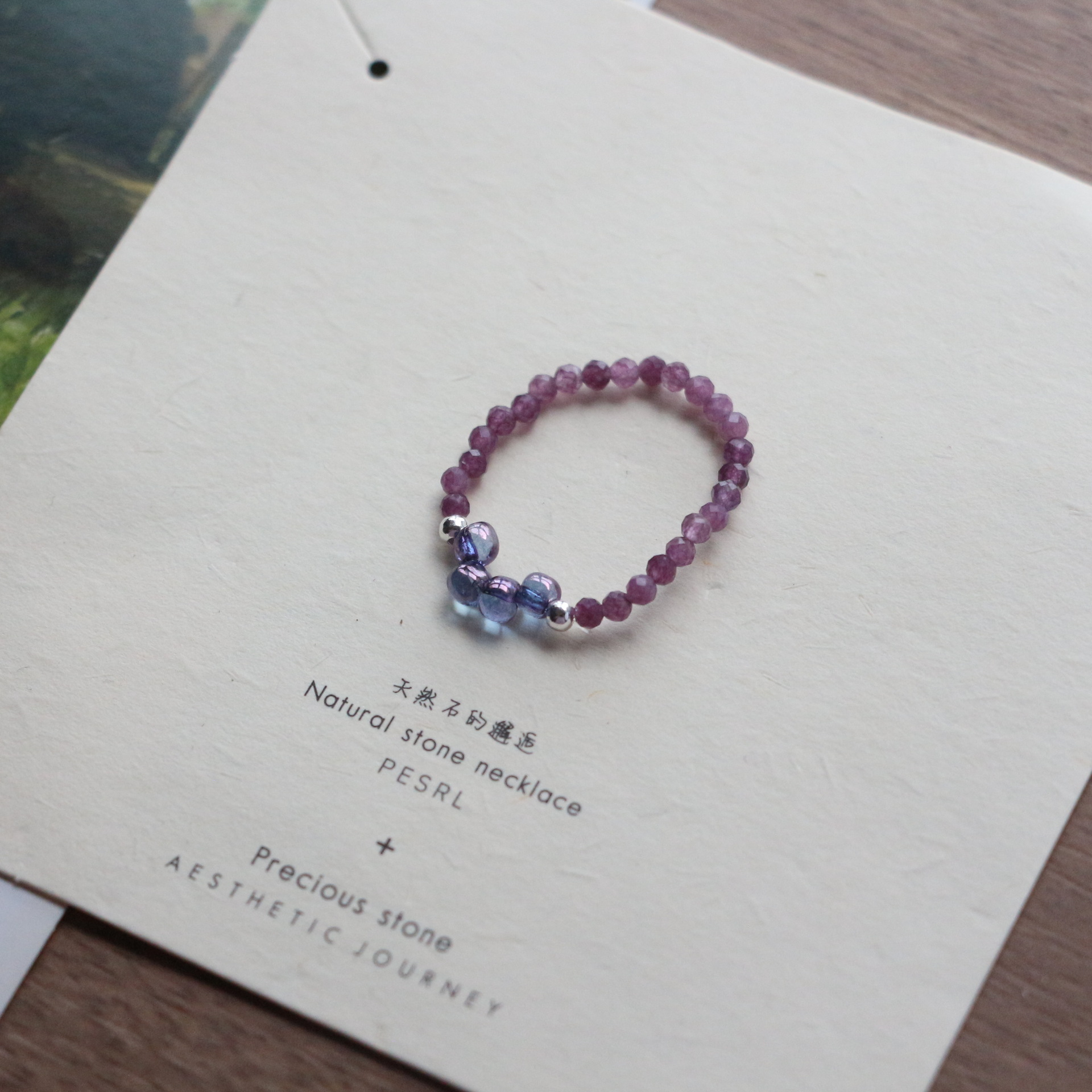 民族風小衆天然石指環食指戒新商品アクセサリー新中国風手作りビーズ弾力指輪