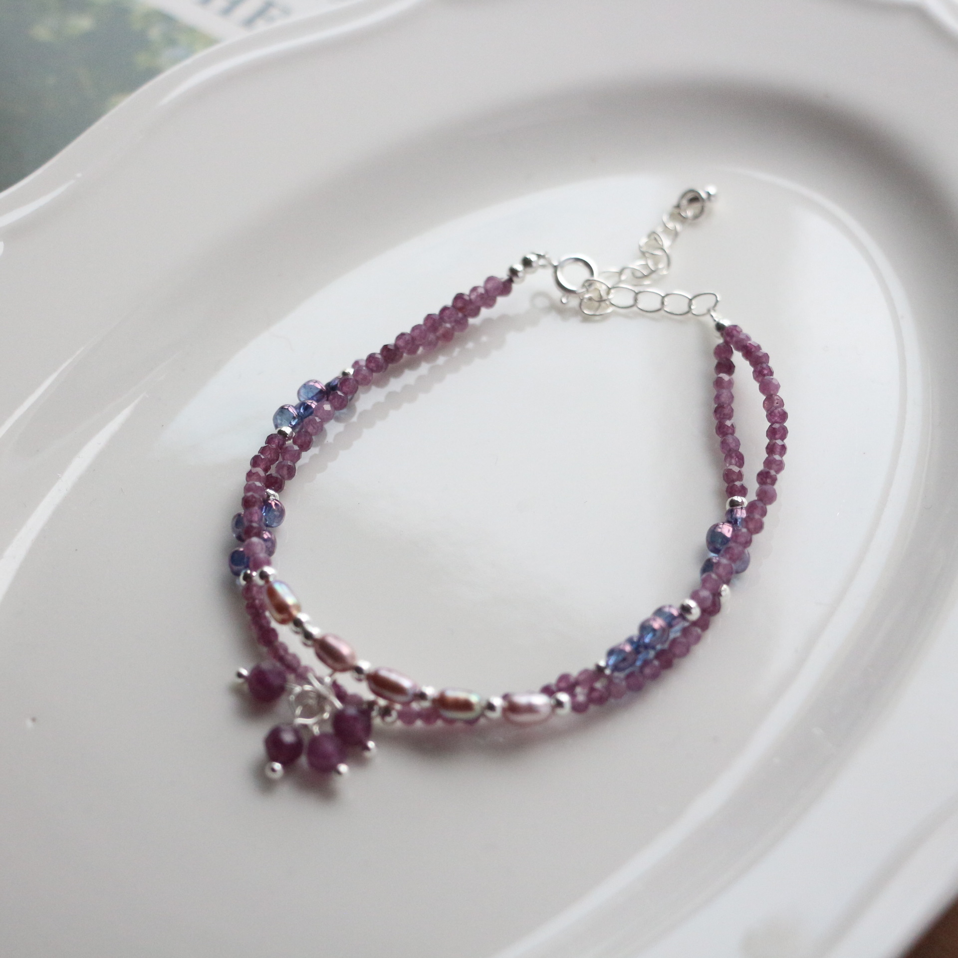 【紫菱】紫水晶黄塔晶四层串珠手串招财纳福新年手串