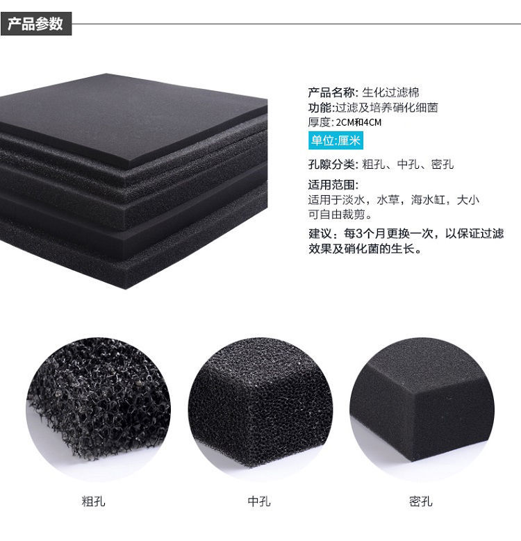 鱼缸生化棉过滤棉活性炭净水棉水族箱滤材过滤材料净水加厚黑海绵