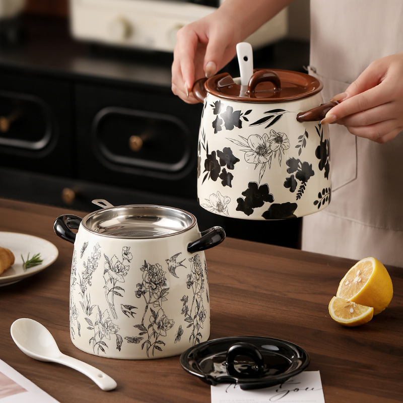 1.2L编制猪油罐-黑白-带滤网+勺:68元
