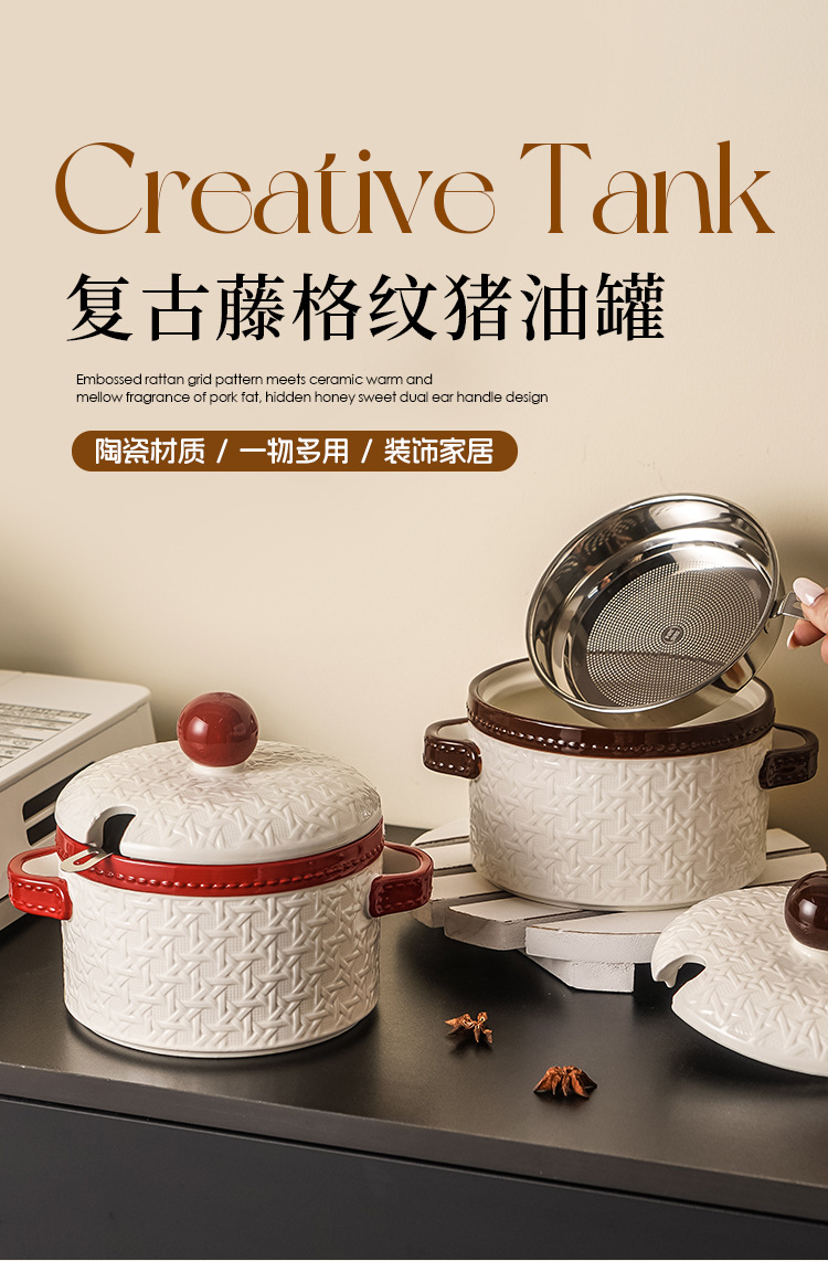 1.2L编制猪油罐-棕白-带滤网+勺:68元