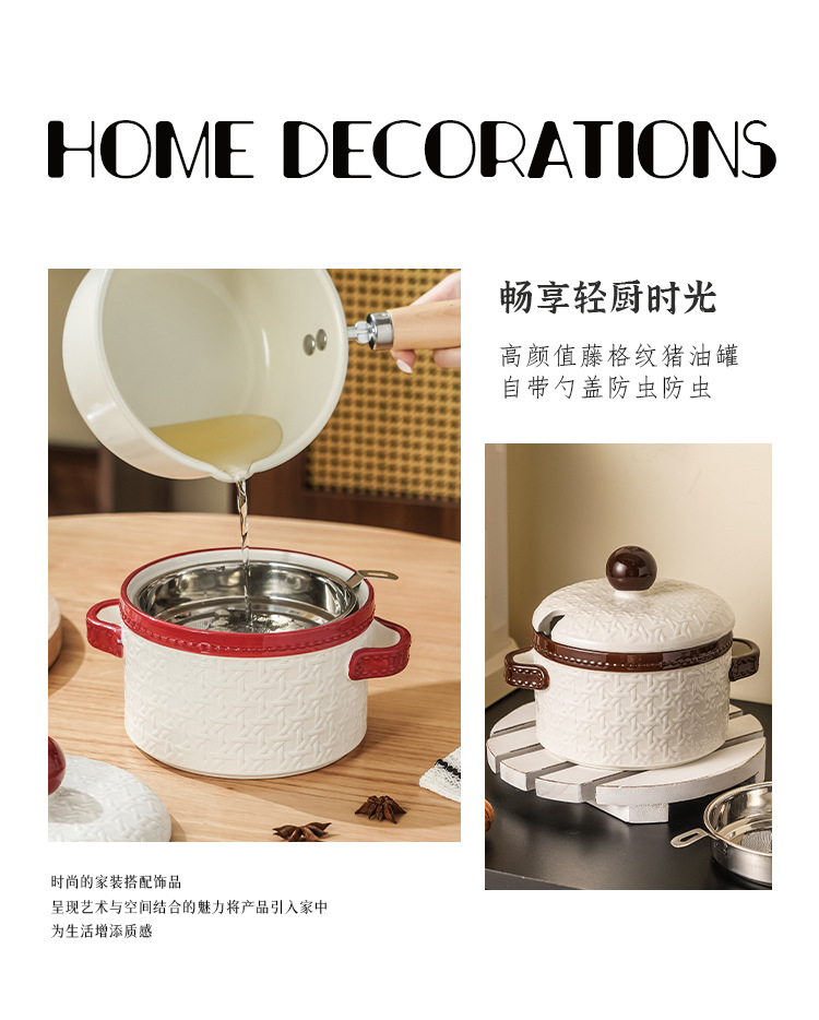 1.2L编制猪油罐-红白-带滤网+勺:68元