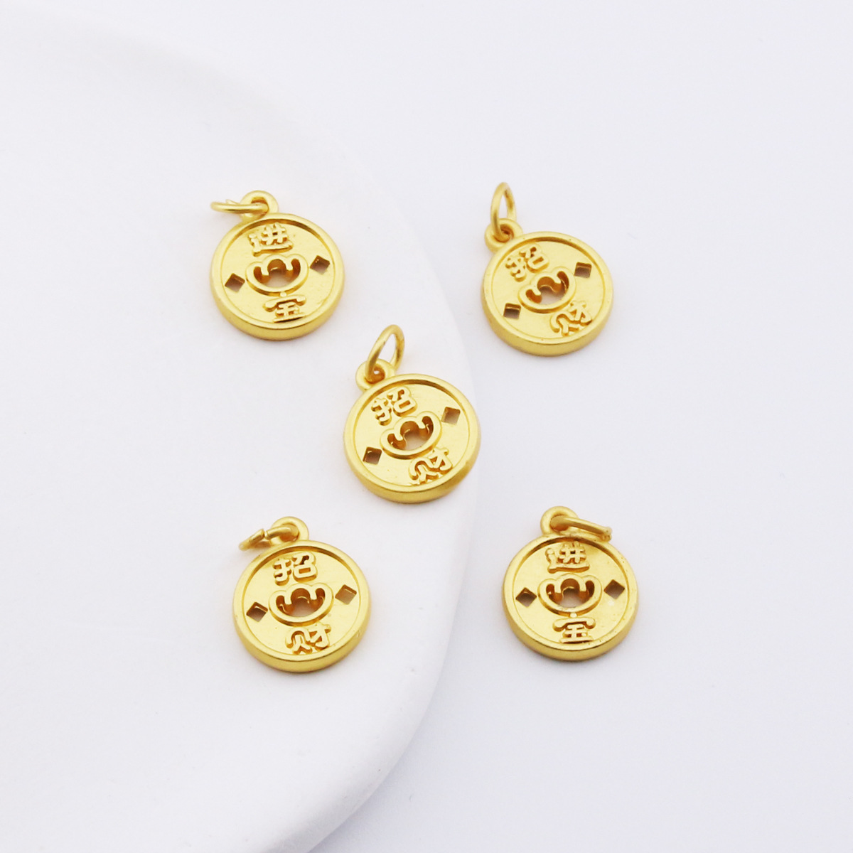 DIY五帝銭飾りアクセサリー、マットゴールド、色落ち防止、手作りブレスレット、ネックレスアクセサリー、ペンダント、卸売