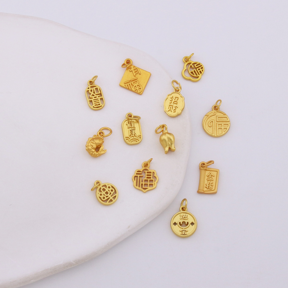 颜色 古法金12件不重复(款式如图),招财进宝(尺寸:11x11mm),乐吊牌(尺寸:10x10mm),福祥云(尺寸:13x11mm),平安(尺寸:12x8mm),如意(尺寸:12x8mm),有福(尺寸:12x12mm),金榜书(尺寸:15x10mm),鲤鱼(尺寸:13x10mm),福牌(尺寸:13x13mm),招财(尺寸:15x10mm),福牌(尺寸:15x12mm),铃兰花(尺寸:13x7mm)