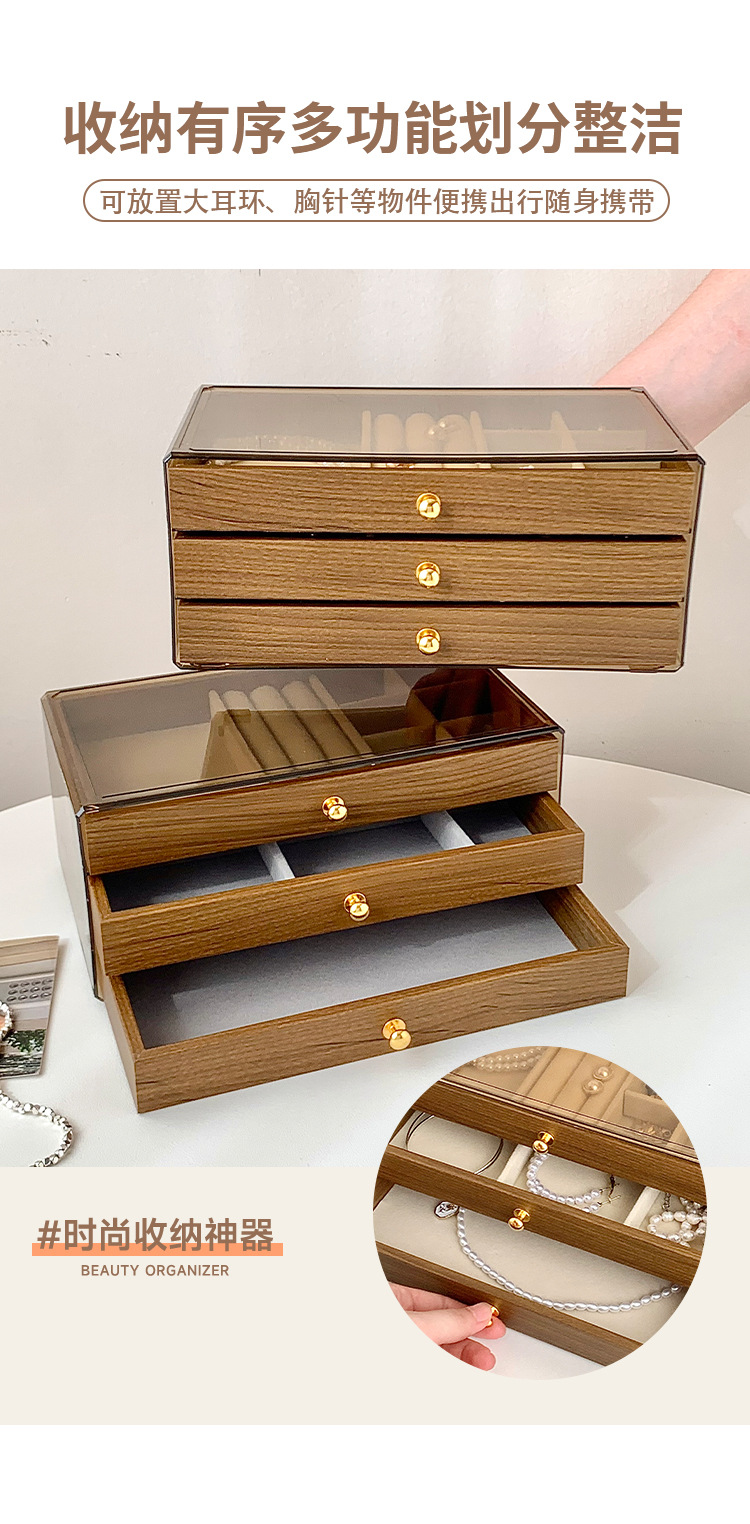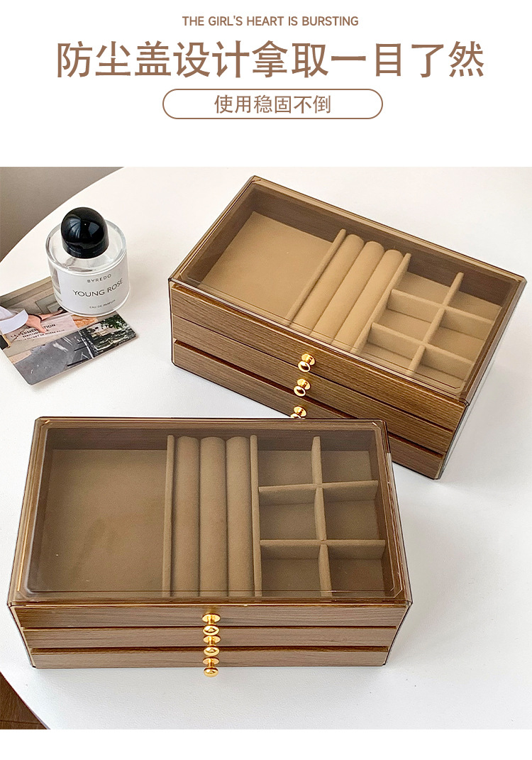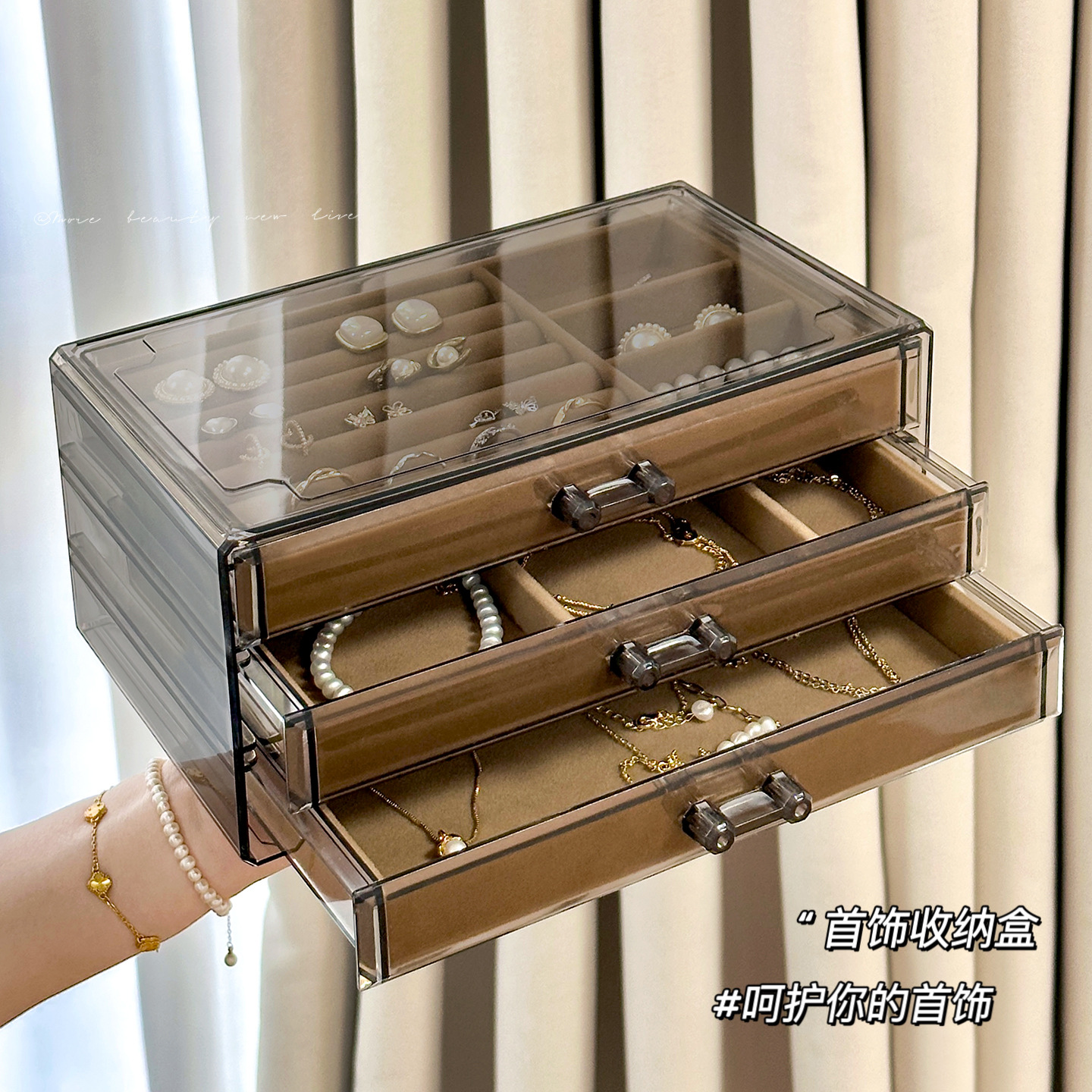 首饰收纳盒多层抽屉式棕色亚克力戒指耳钉项链饰品盒大容量防氧化