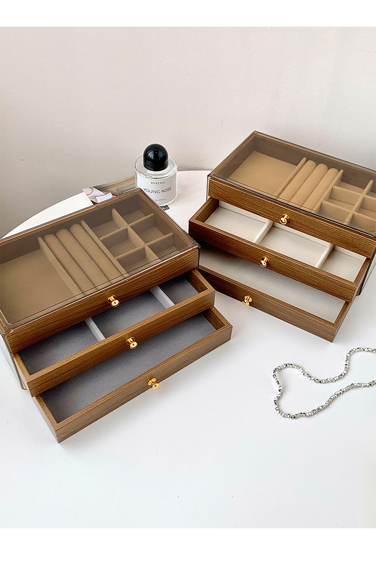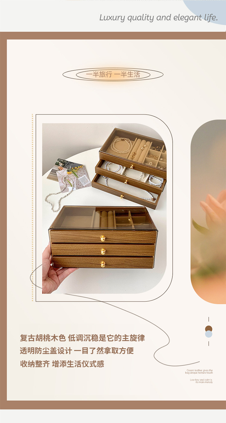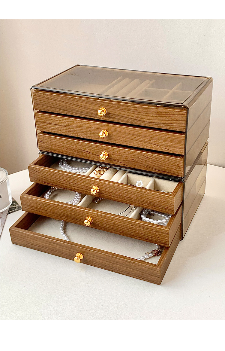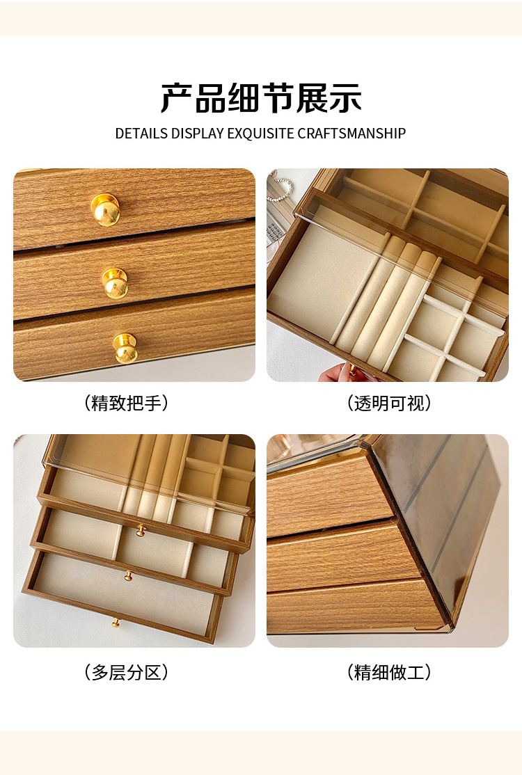 首饰收纳盒多层抽屉式棕色亚克力戒指耳钉项链饰品盒大容量防氧化