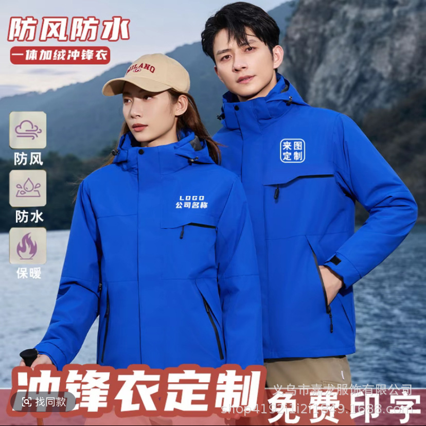 冲锋衣定制logo秋冬工作服加绒加厚户外防风团体工装男女外套印字