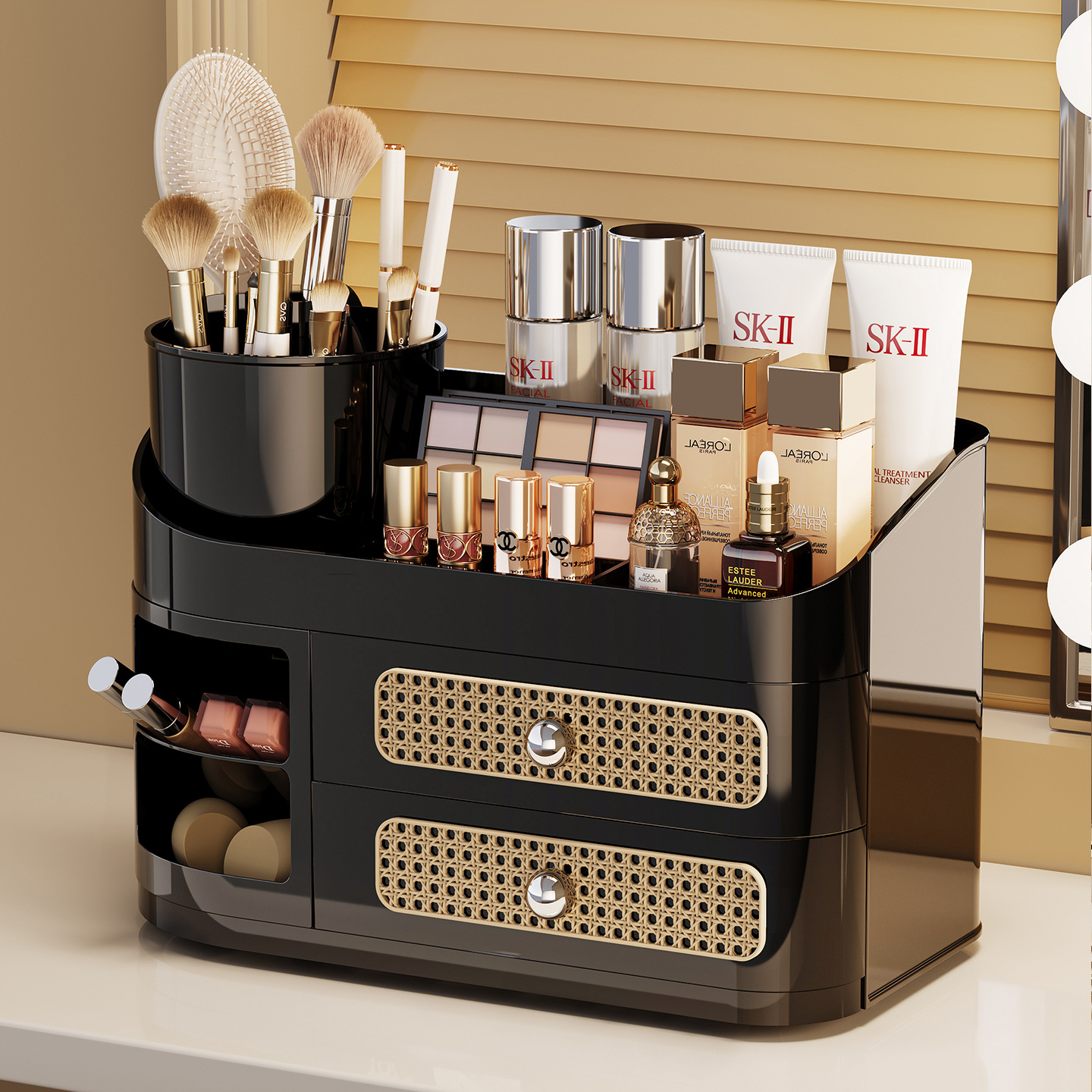 中古风化妆品收纳盒桌面高级感大容量抽屉分格口红置物架子高级感