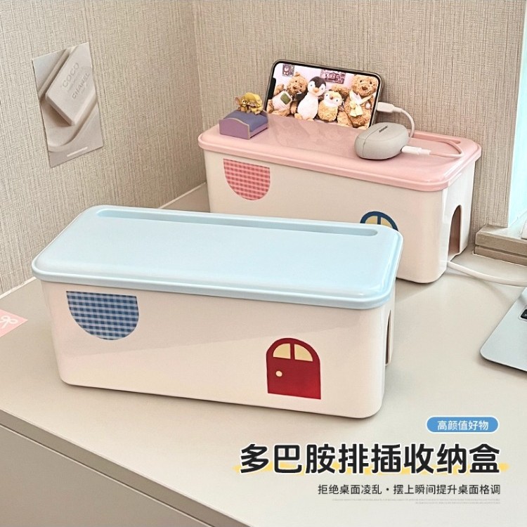 排插收纳盒插线板电源线收纳桌面插线整理盒多功能塑料理线收纳盒