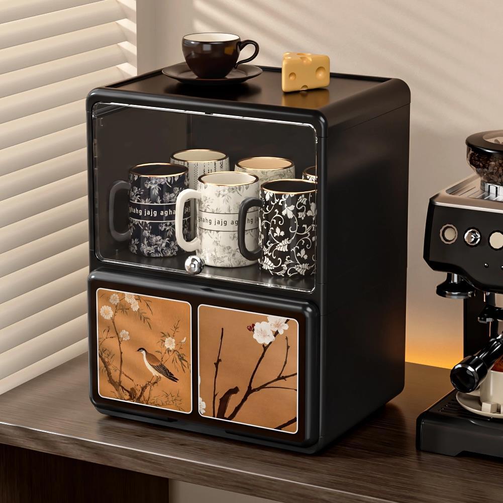 中古风杯子收纳盒高颜值轻奢置物盒抽屉式马克杯咖啡杯茶包储物盒