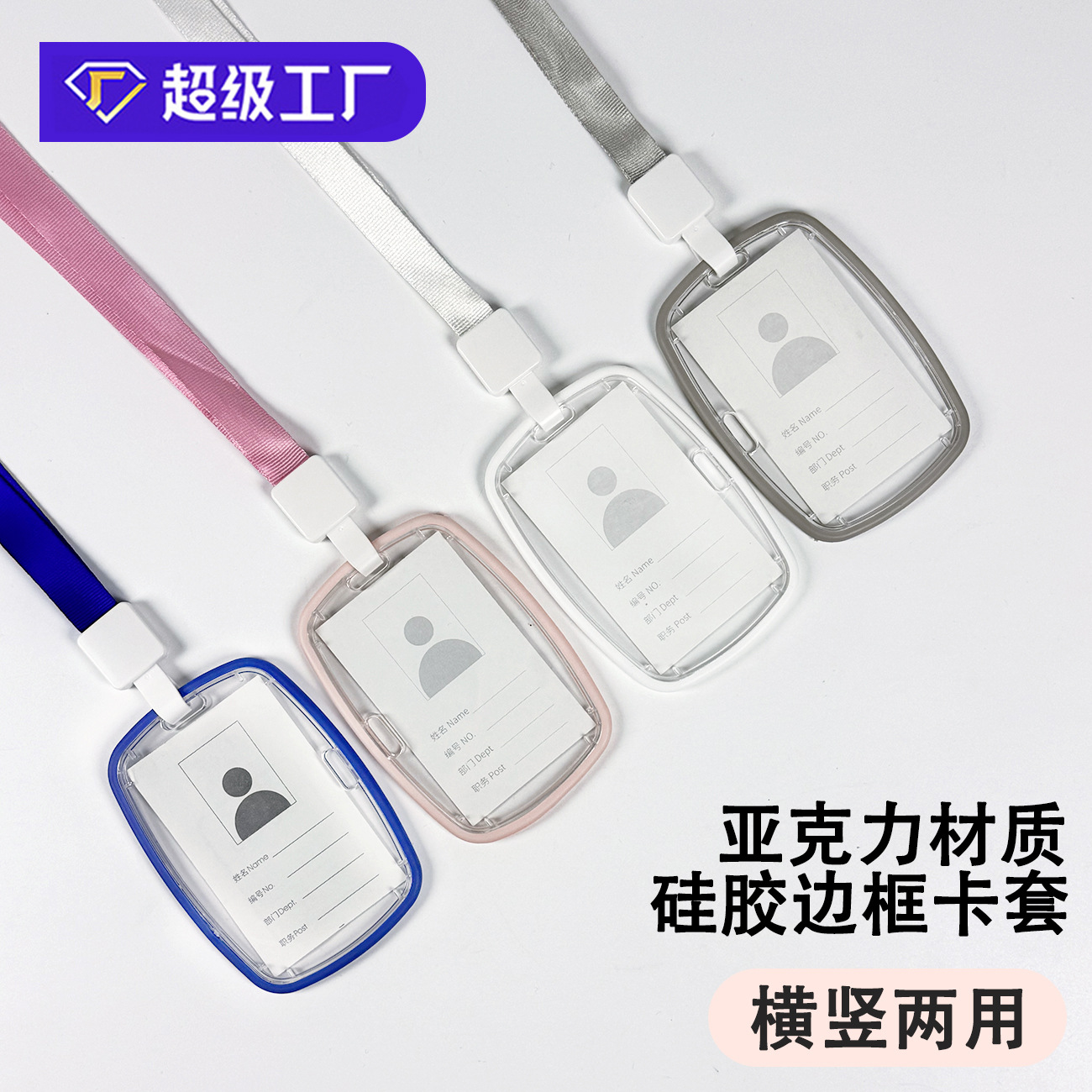 両面透明アクリル ID カードホルダー学生労働証明書カバーランチカードシリコンストリップストラップ