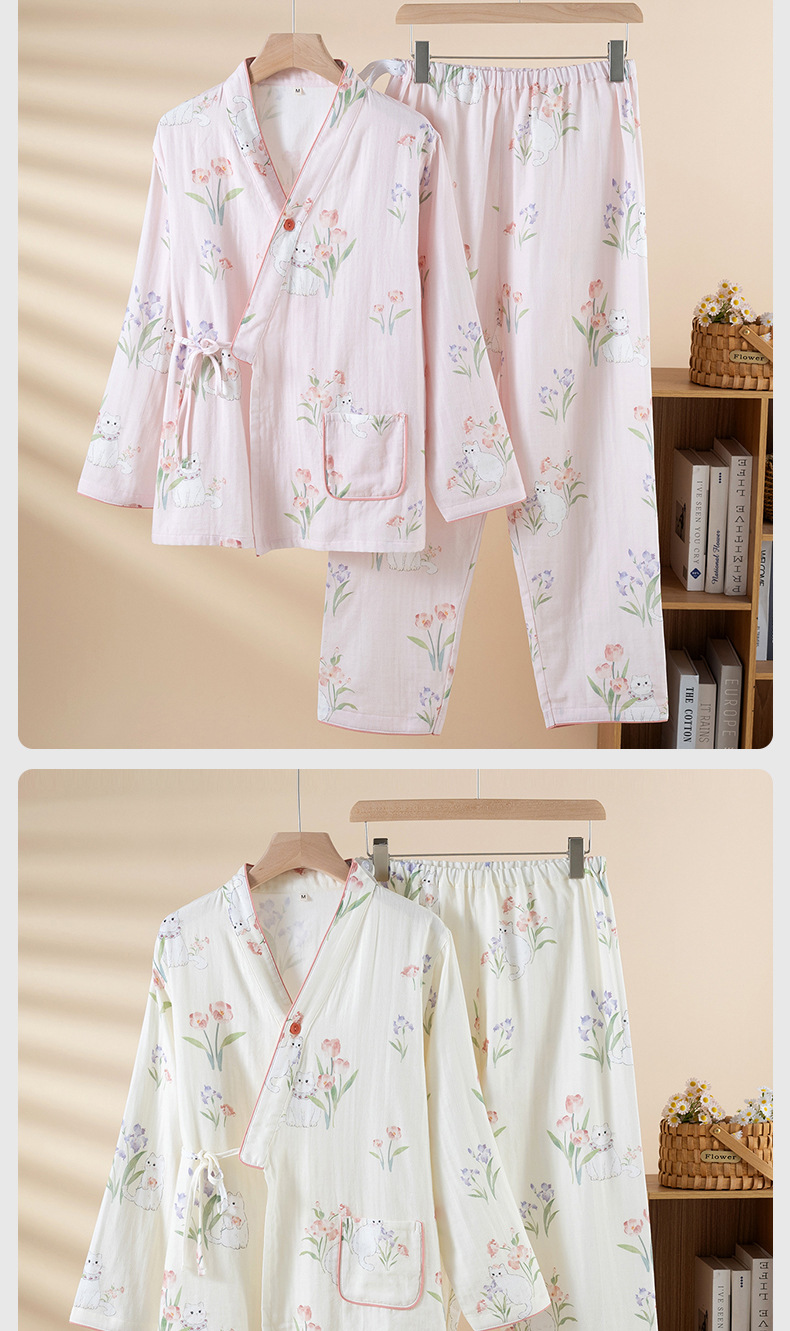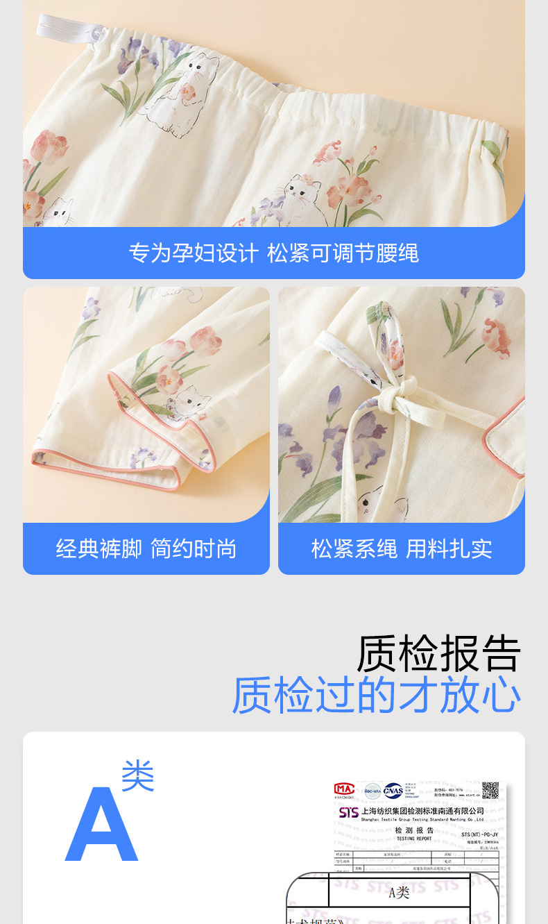 新品着物純綿二重ガーゼ月子服パジャマ春夏妊婦産後授乳調節可ホームウェア