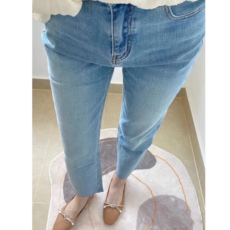 薄い色の氷の糸のパイプのストレートのジーパンの女性の2024年の夏の薄いタイプの新型の腰の小さいズボン