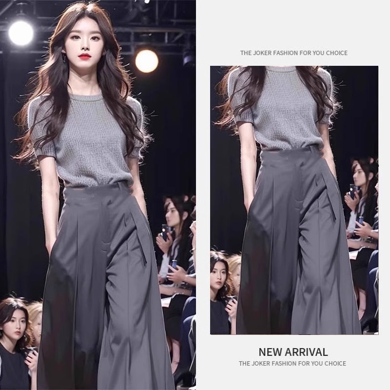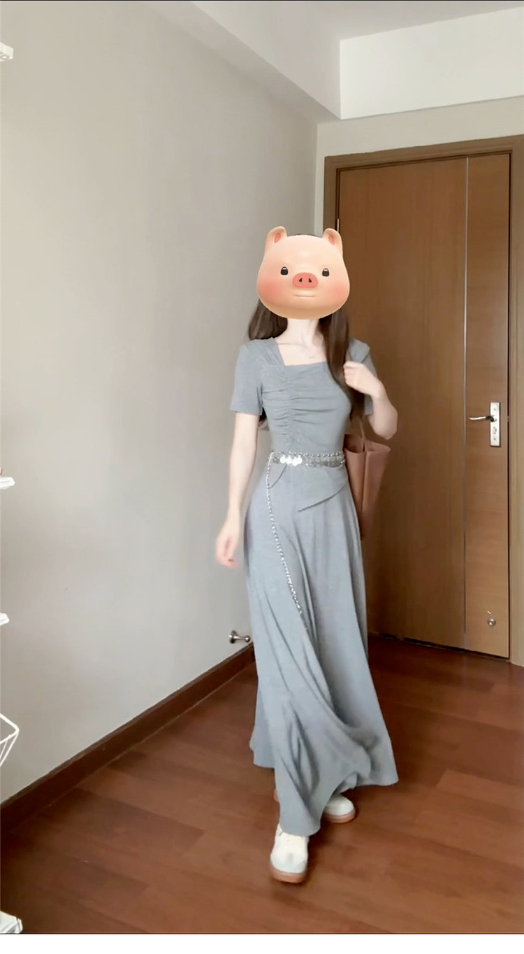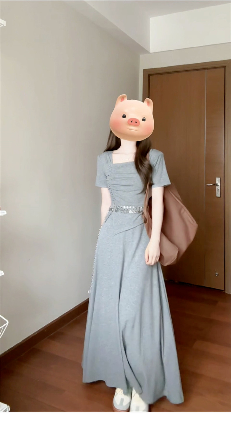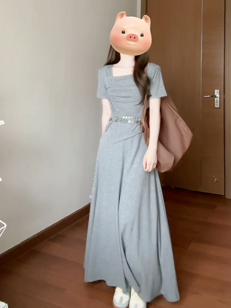 2025新款小个子慵懒风灰色连衣裙子女夏季法式高级感穿搭长裙套装