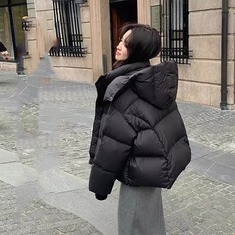 黒の短いダウン綿服の女性2024冬の新しい泡芙雲の小柄な厚いゆったりしたパン服のコート